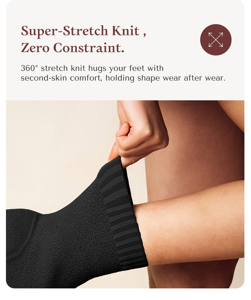 Absolutely! Our boots feature a stretchy flyknit fabric that provides excellent flexibility and a snug fit, accommodating various calf sizes. The tailored cut and design also help to enhance leg shape, creating a slimmer and more elongated look, making you feel confident and elegant.