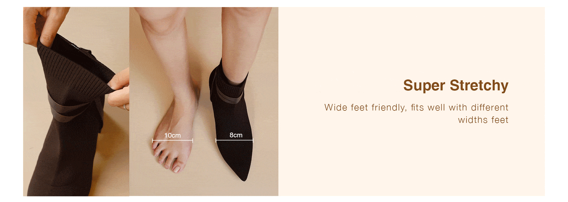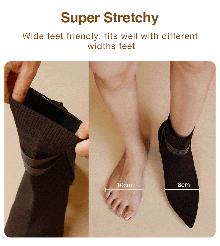 Absolutely! Our boots feature a stretchy flyknit fabric that provides excellent flexibility and a snug fit, accommodating various calf sizes. The tailored cut and design also help to enhance leg shape, creating a slimmer and more elongated look, making you feel confident and elegant.