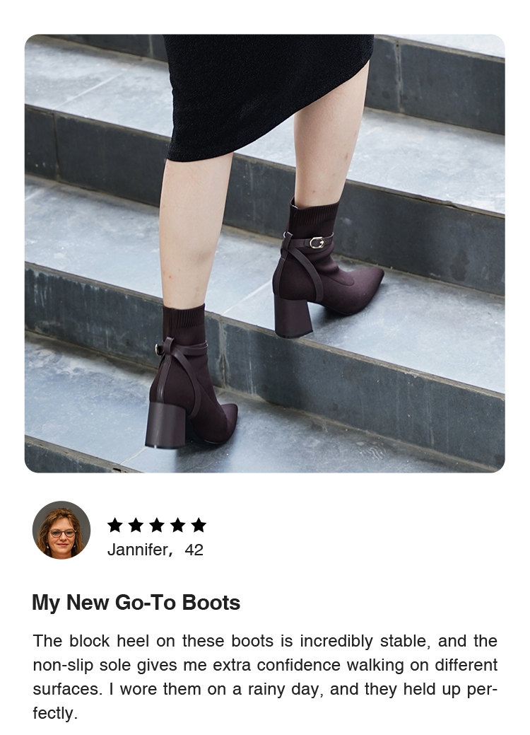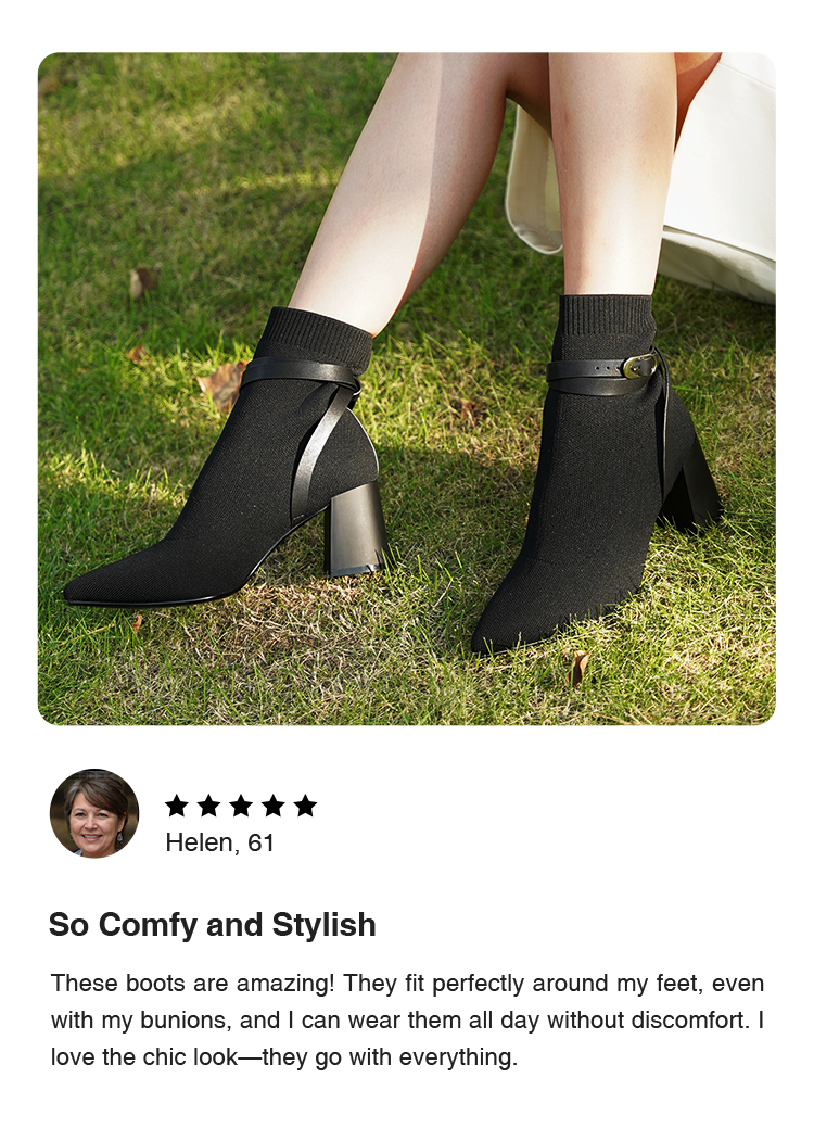 Absolutely! Our boots feature a stretchy flyknit fabric that provides excellent flexibility and a snug fit, accommodating various calf sizes. The tailored cut and design also help to enhance leg shape, creating a slimmer and more elongated look, making you feel confident and elegant.