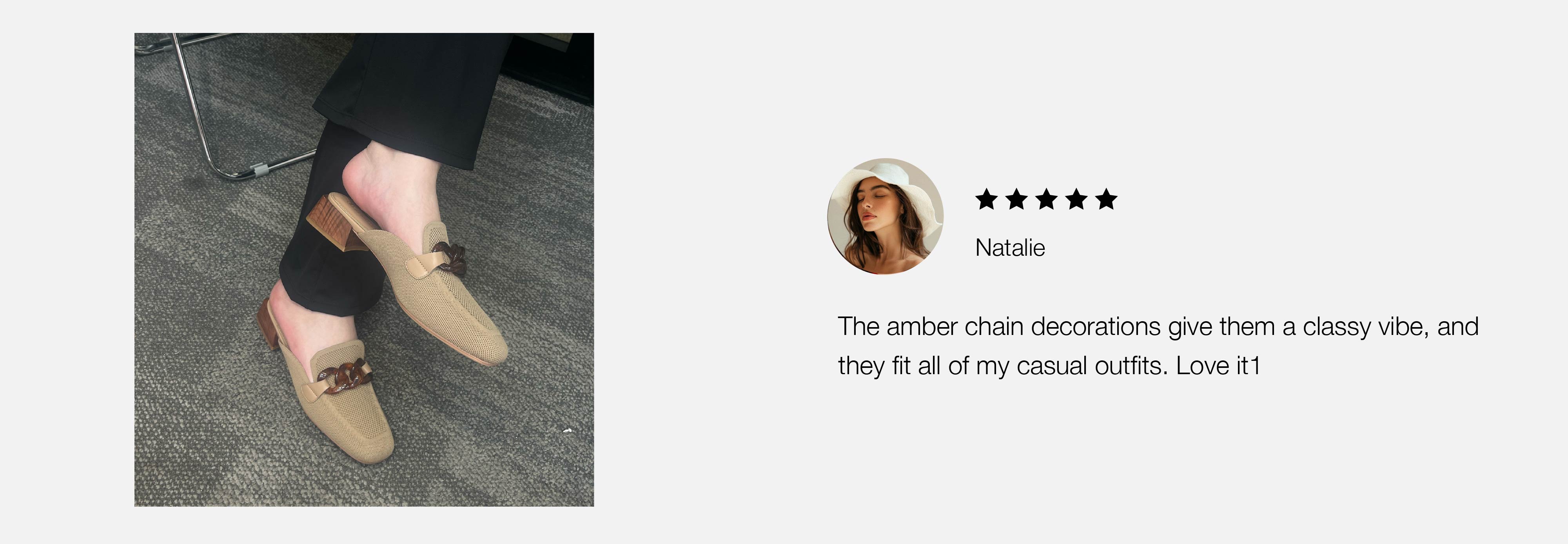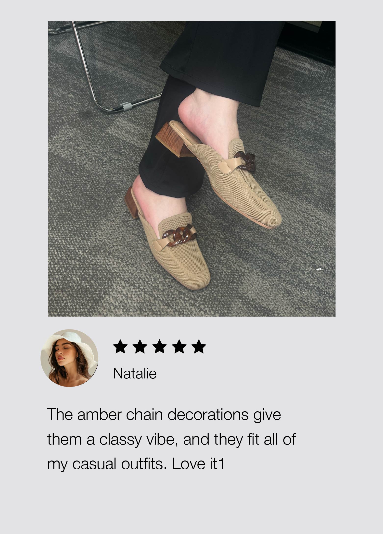 AmberHaven boast a sleek design with a sophisticated square toe and unique amber chain decorations, adding a touch of glamour to your every step.