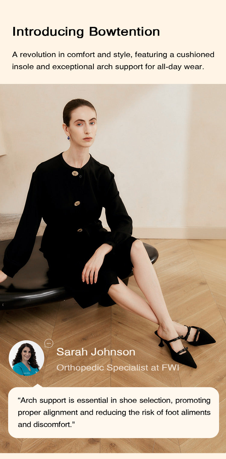 Mid heel design of Bowtention minimizes strain on the feet and ensures optimal comfort, providing stability and support for prolonged wear.