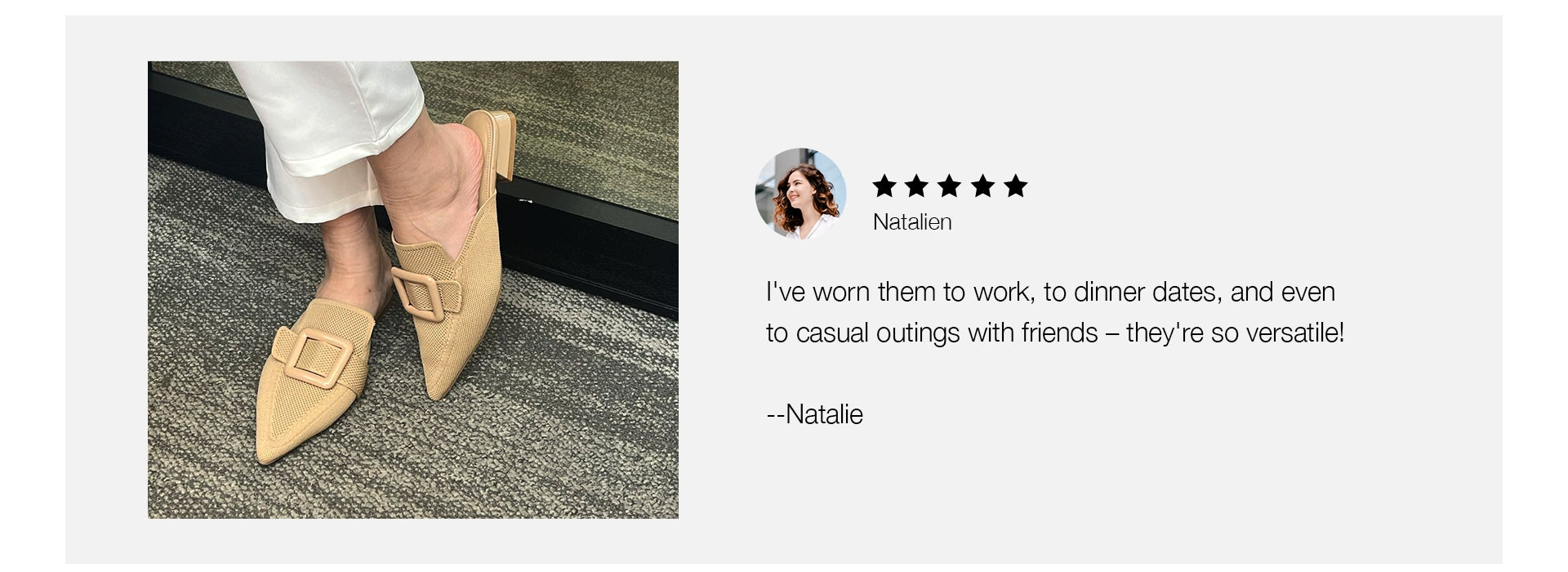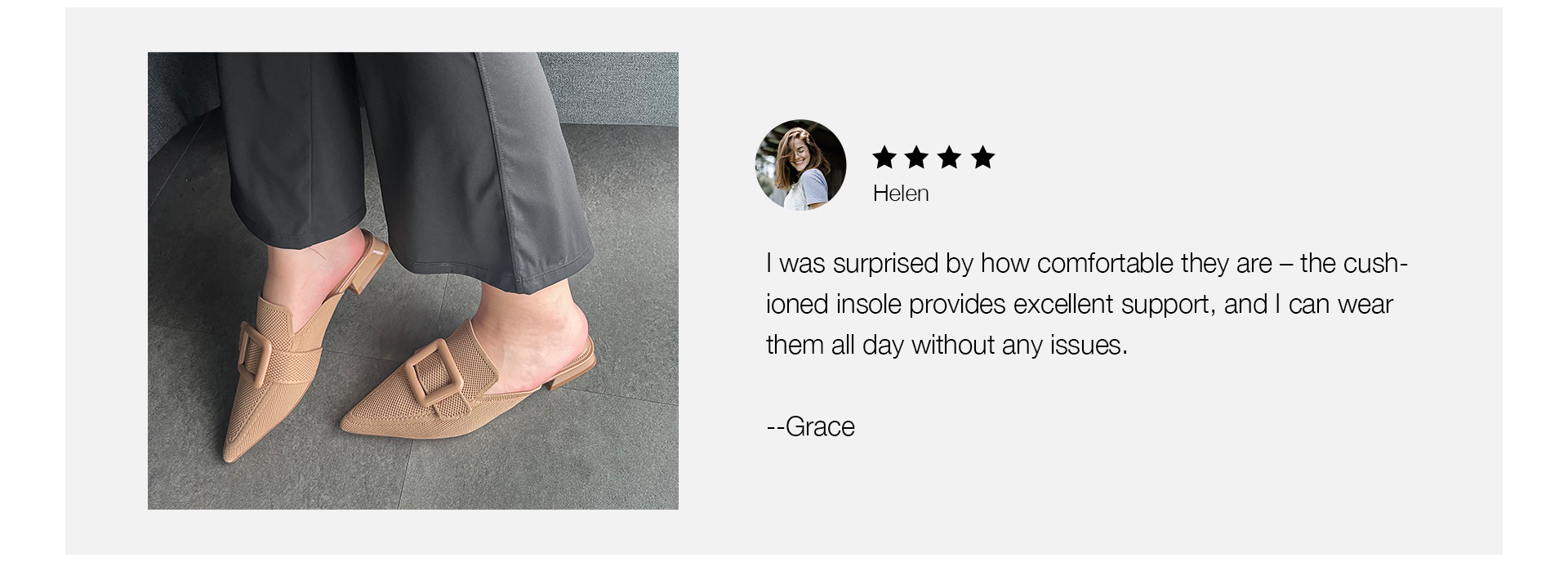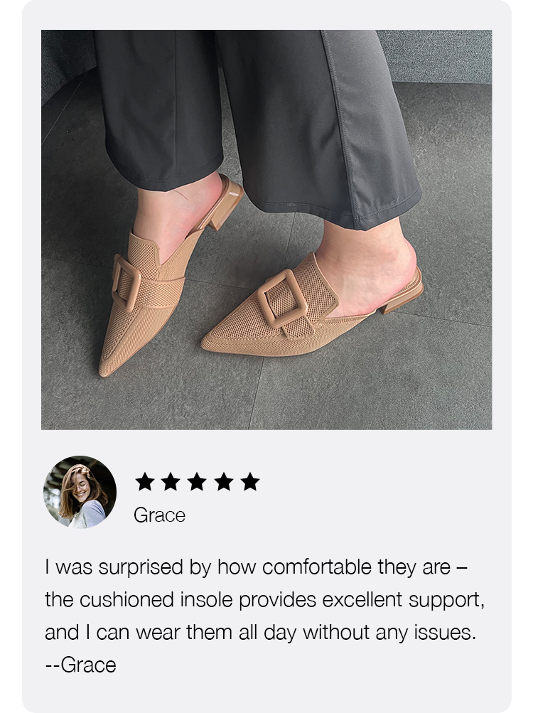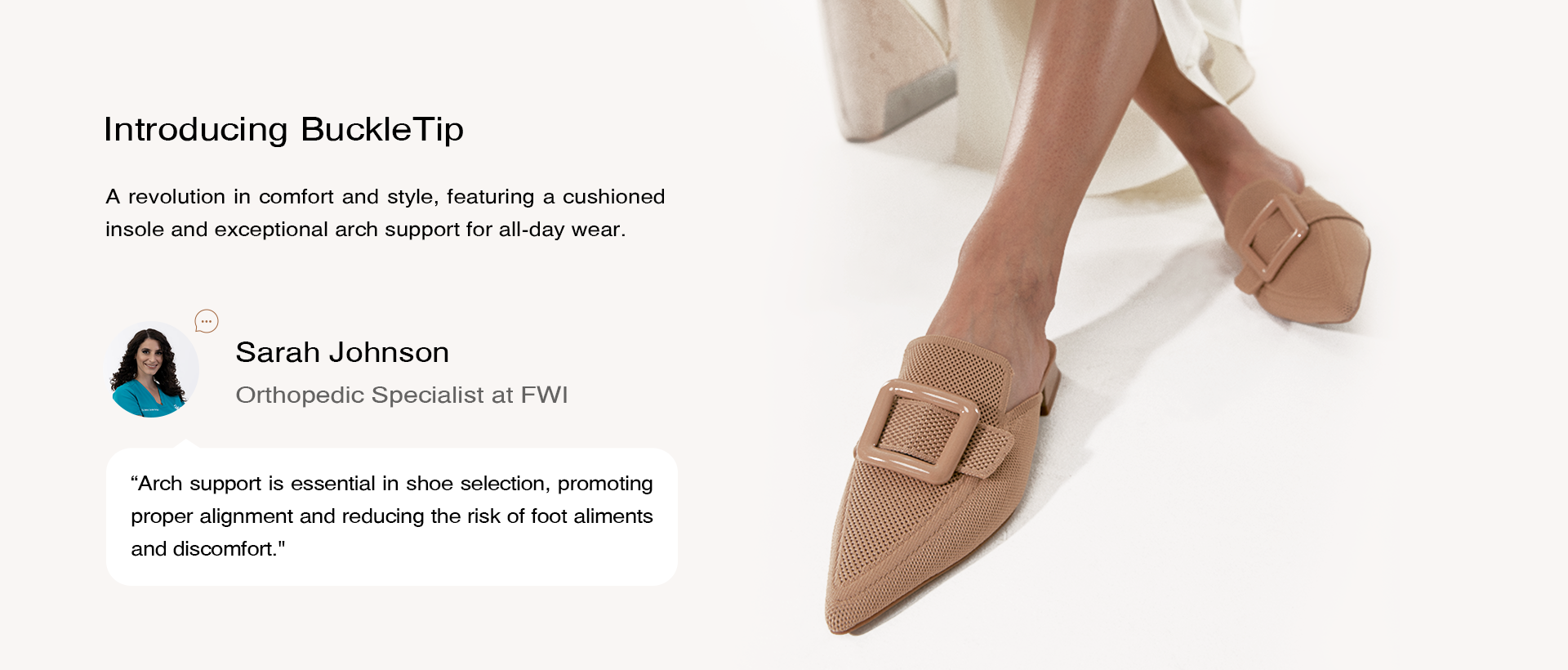 Flat heel design of BuckleTip minimizes strain on the feet and ensures optimal comfort, providing stability and support for prolonged wear.