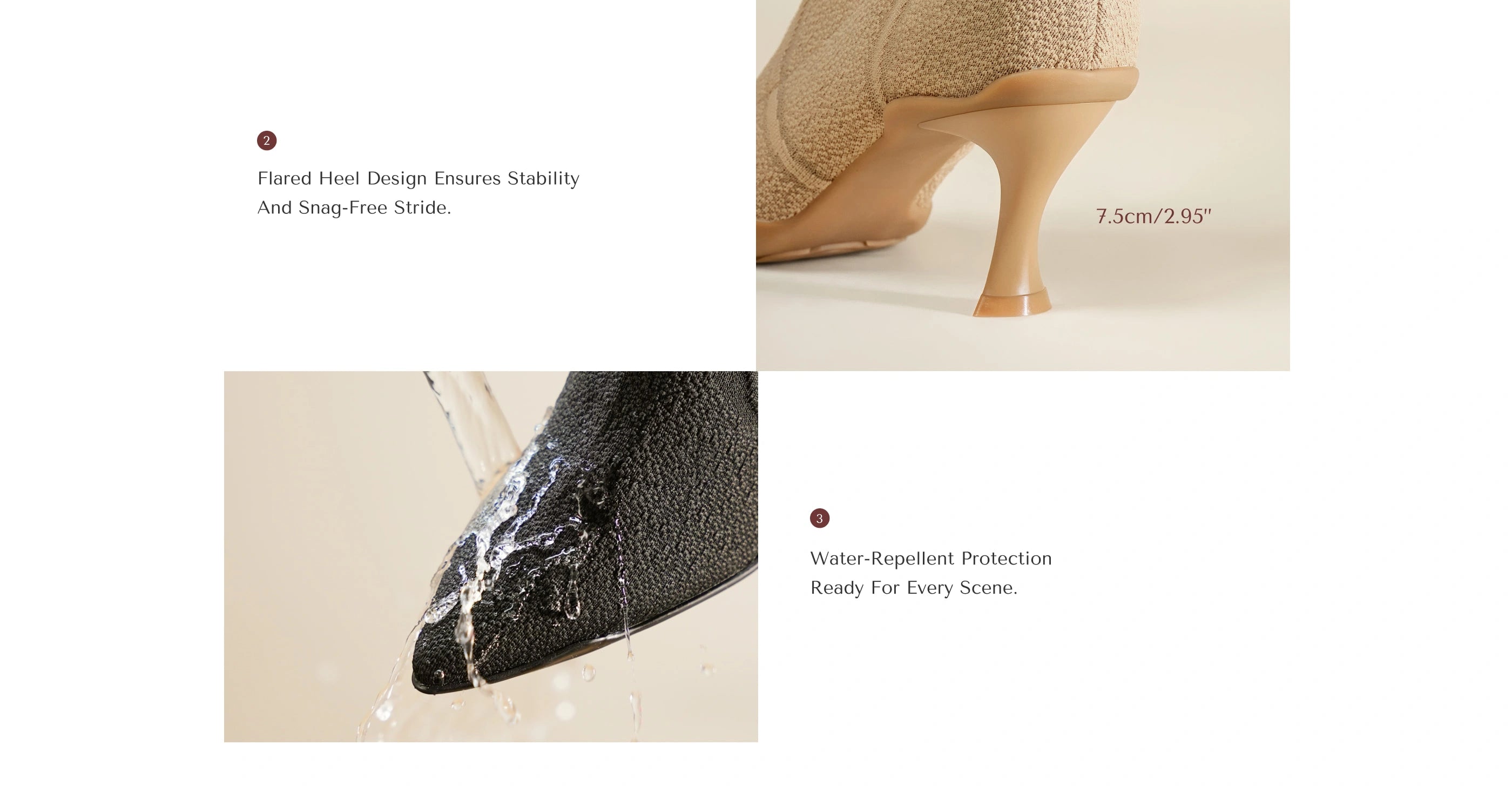Effortlessly elevate your style with our Minimalist Pointed Toe Stiletto Ankle Boots, blending the elegance of a sleek pointed toe and stiletto heel with the comfort of a sneaker-inspired sole. Crafted from high-quality Fly Woven material, these boots offer a perfect balance of durability and flexibility. The hidden athletic sole ensures all-day comfort, making them as practical as they are stylish. With a 7.5cm (2.95 inches) heel height, they bring sophistication to any outfit, letting you stride in both luxury and ease.