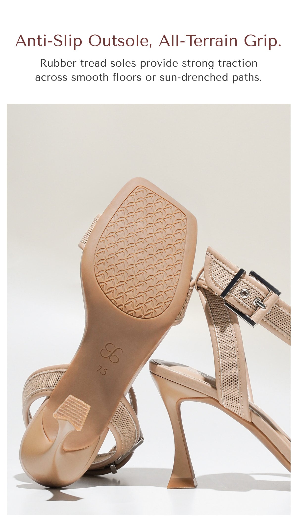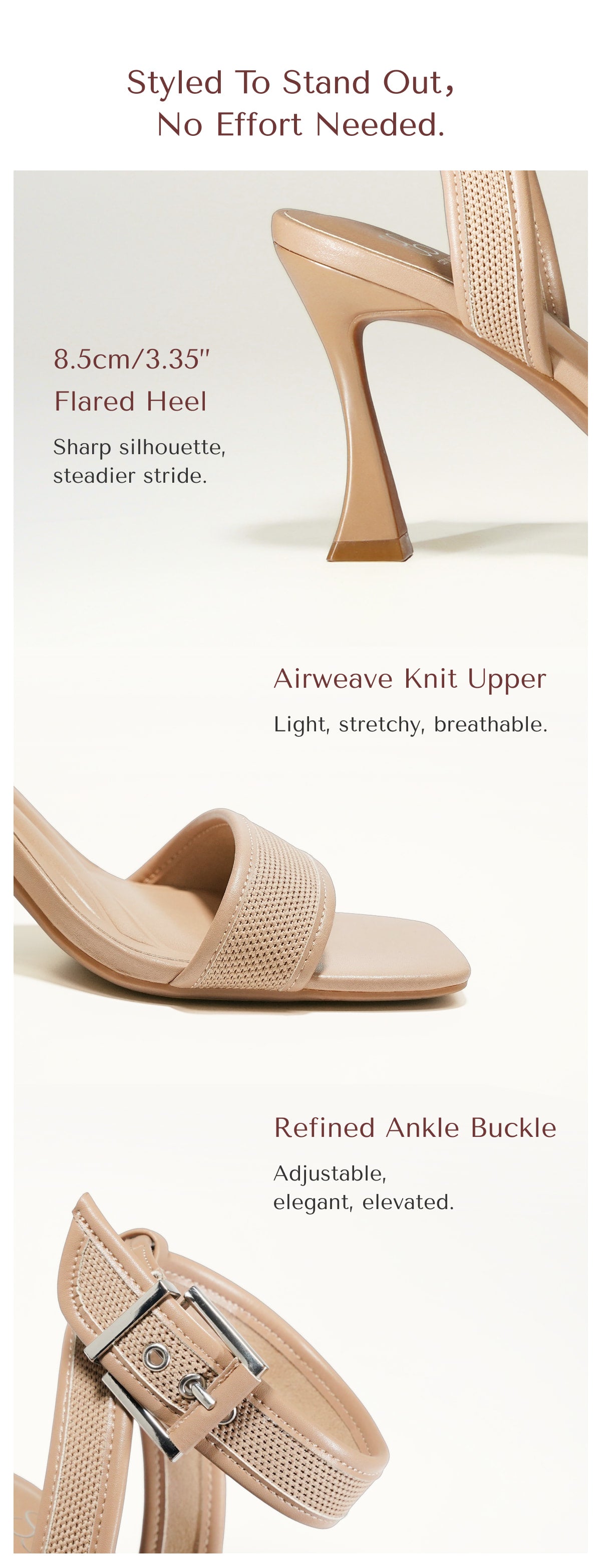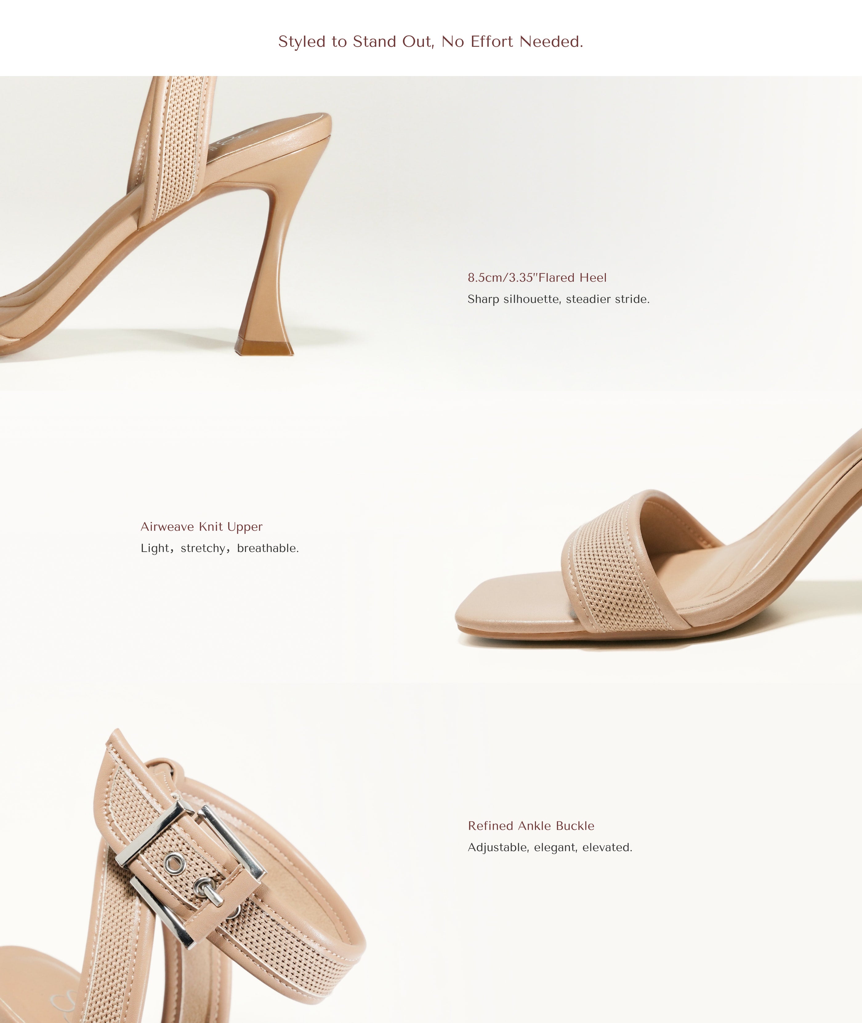 Designed for both style and comfort, these heels feature a breathable flywoven upper, a secure metal buckle, and an ergonomic stiletto heel for a stable yet chic look. The soft cushioned insole ensures all-day comfort, while the square toe design provides a modern touch. Complete with a non-slip rubber sole, these heels are perfect for any occasion—whether it's a night out or a day at the office.