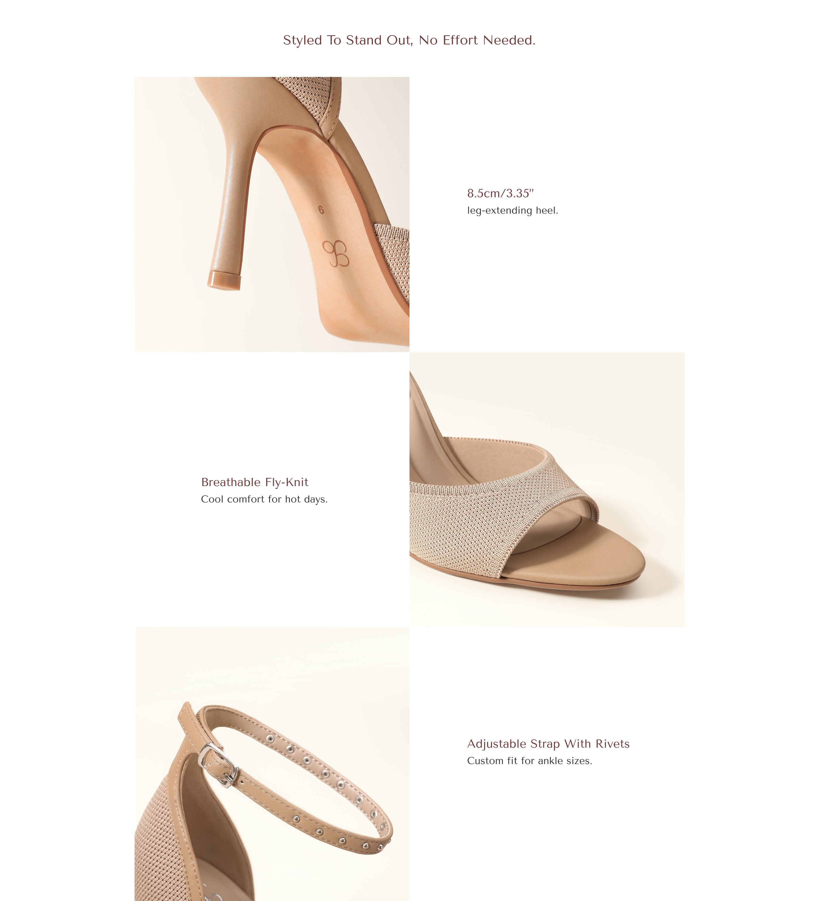 Elevate your style with the Minimalist Round Toe Ankle Strap Heeled Sandals, designed for those who love a mix of elegance and edgy details. The sleek stiletto heel (8.5cm/3.35 inches) provides a graceful lift, while the round toe silhouette ensures a timeless appeal. The highlight? A metal-studded ankle strap, delicately adorned with small rivets for a subtle yet striking finish.