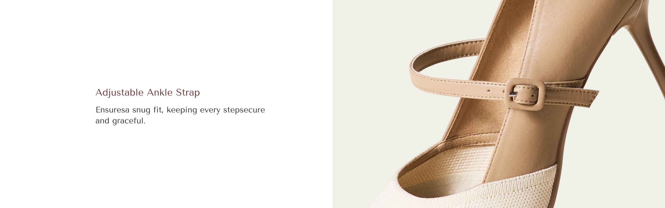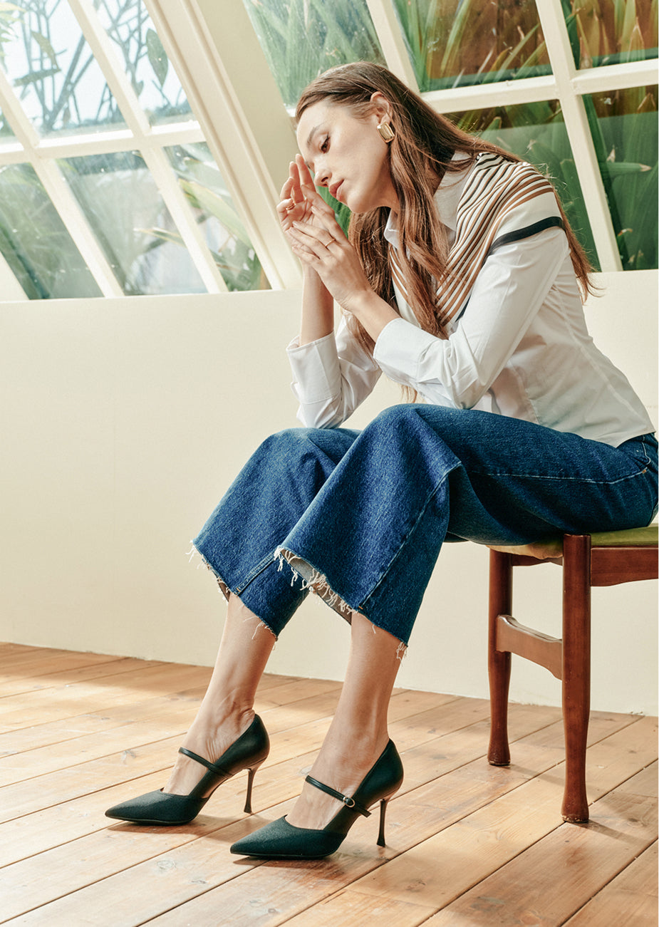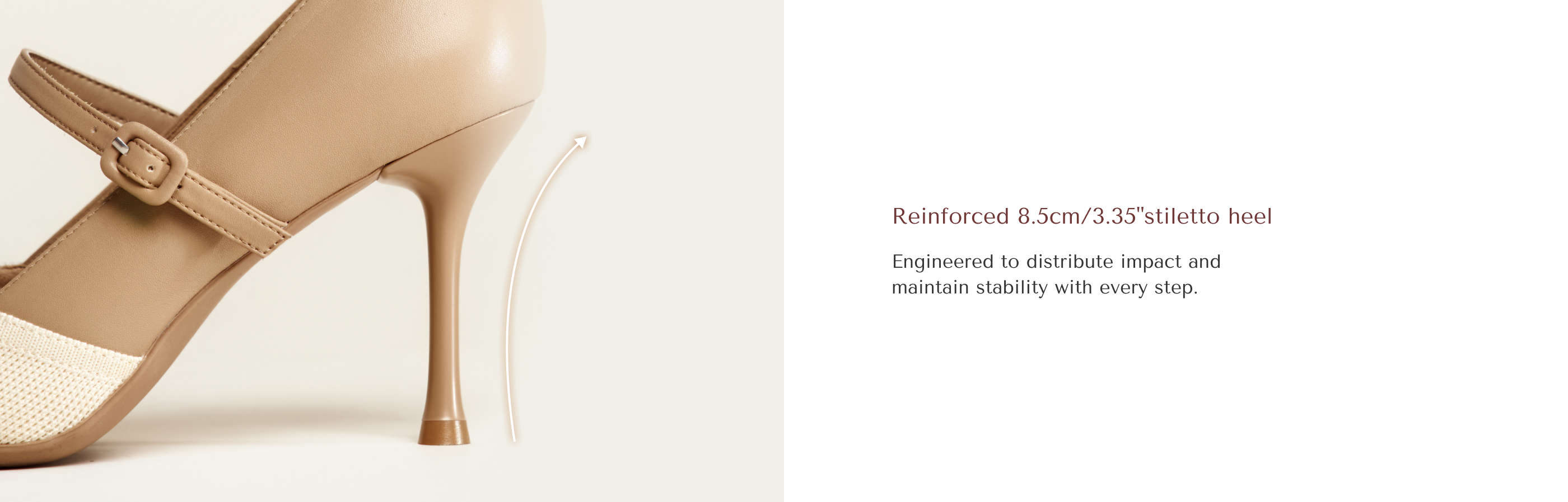 The 8.5 cm (3.35 inches) stiletto heel subtly lifts your posture and elongates the leg line, creating a refined silhouette for work meetings, everyday outings, or evening dates. The fly-woven upper pairs classic dual-tone detailing with clean structural lines, delivering understated sophistication. A soft inner cushion at the back protects against rubbing, while the secure pin-buckle strap ensures a comfortable, steady walk. Perfect for the woman who wants style that moves with her.