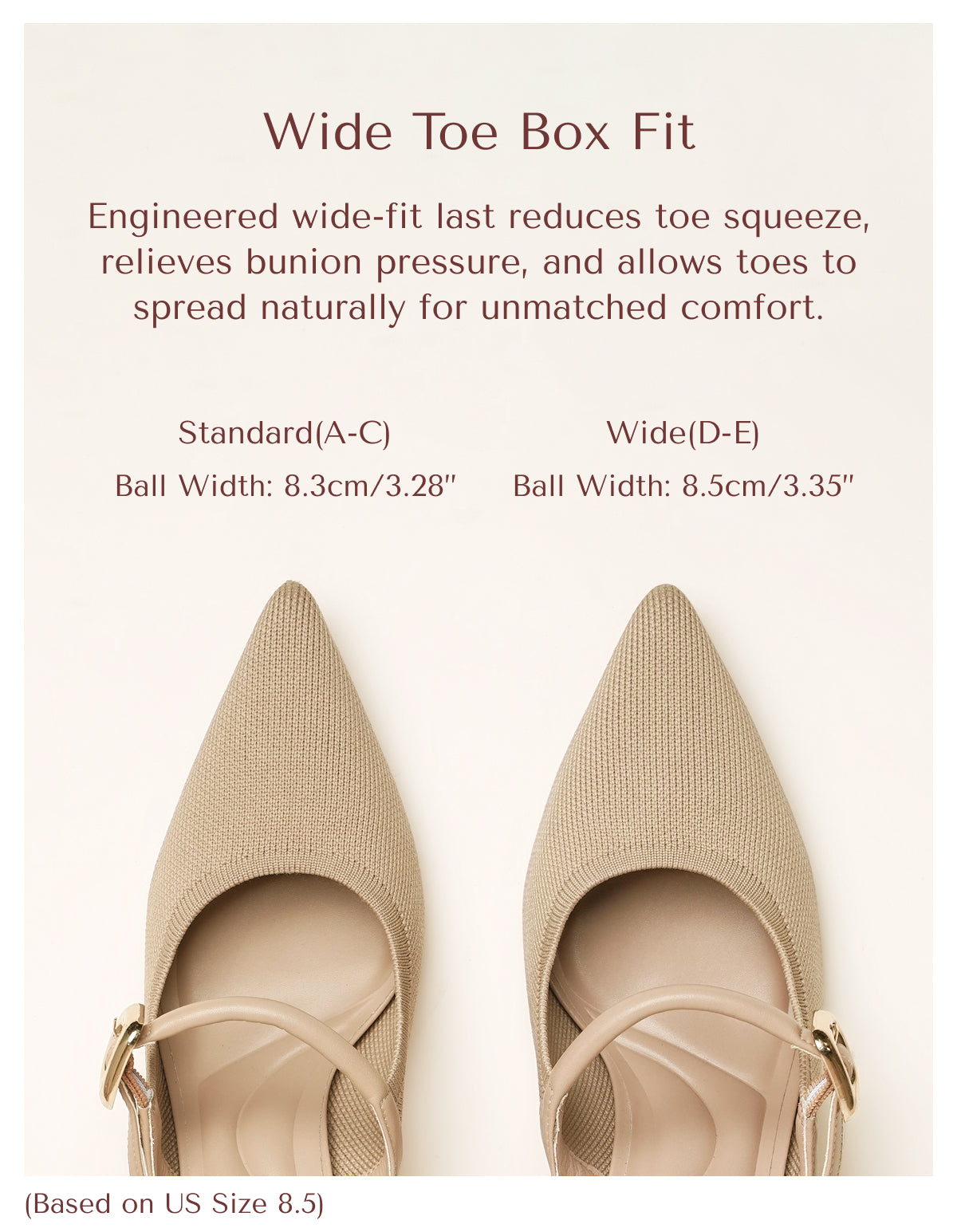 - Ancho de la bola: 8,5 cm (según la talla 8,5 de EE. UU.)