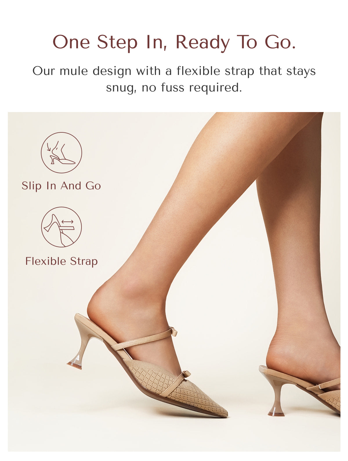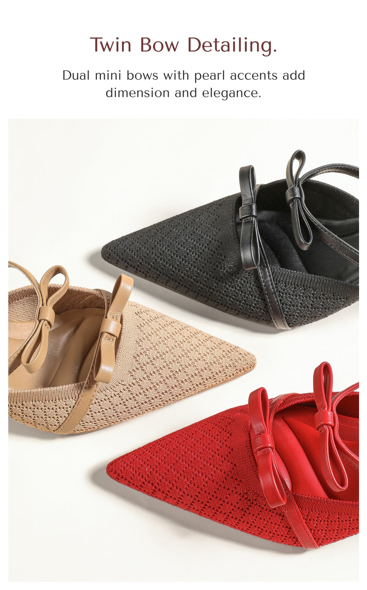 Realza tu estilo con nuestros mules de tacón Bowtention con punta puntiaguda. Inspirados en la clásica silueta de los mules, estos zapatos presentan una femenina punta puntiaguda. Elaborados con un tejido de punto cómodo y agradable para la piel, están adornados con delicados lazos de mariposa. El diseño de tacón cuadrado combina dulzura con un toque de sofisticación, transmitiendo una sensación de seguridad y elegancia. El tacón de gatito alarga la línea de la pierna, realzando su atractivo femenino.