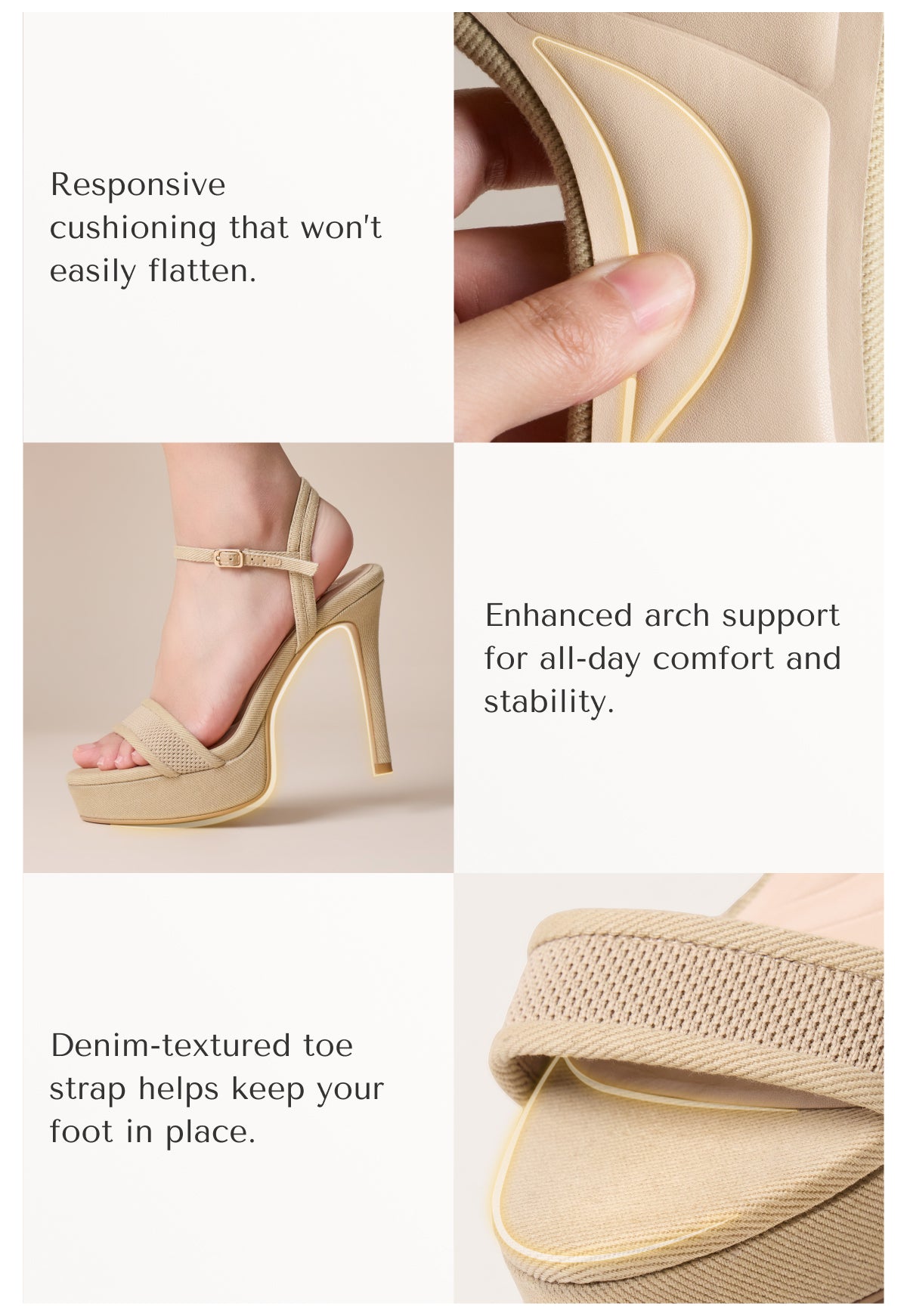 Elevate your evening look without the strain. DenimLoft is designed for the woman who appreciates a dramatic silhouette but refuses to compromise on comfort. The 3cm (1.18 inches) platform acts as a built-in cushion, significantly reducing the arch pitch of the 12cm (4.72 inches) heel, so you can stand taller with greater ease. Crafted with a flexible Fly Woven upper, it gently hugs the foot, while the plush velvet liningensures a friction-free experience from dinner to dancing.