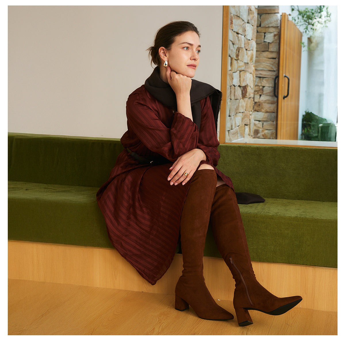 Step out in style with our Minimalist Zipper Pointed Toe High Boots. Crafted with luxurious faux suede and lined with soft fabric, these boots are perfect for any occasion. The block heels provide comfort and stability, while the pointed toe and zipper add a touch of sophistication. With a 6.5cm (2.56 inches) heel height, these boots will elevate any outfit.