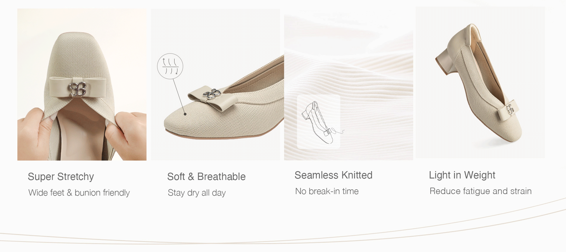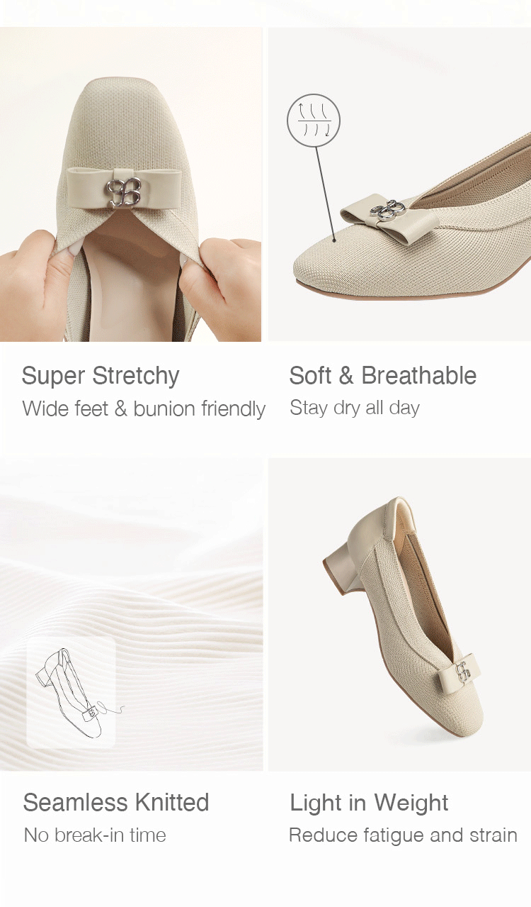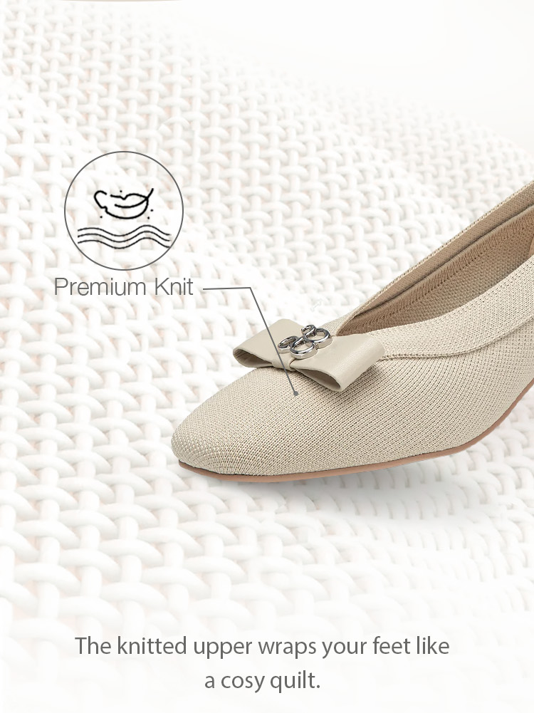 Indulge in luxury with our Bow Round Toe Heeled Pumps. Featuring a delicate bow decoration and a soft, skin-friendly knit upper, these pumps offer both style and comfort. With a cushioned insole for arch support and heel padding, you can enjoy a stable and comfortable walk all day long. Elevate your wardrobe with these sophisticated and exclusive pumps.