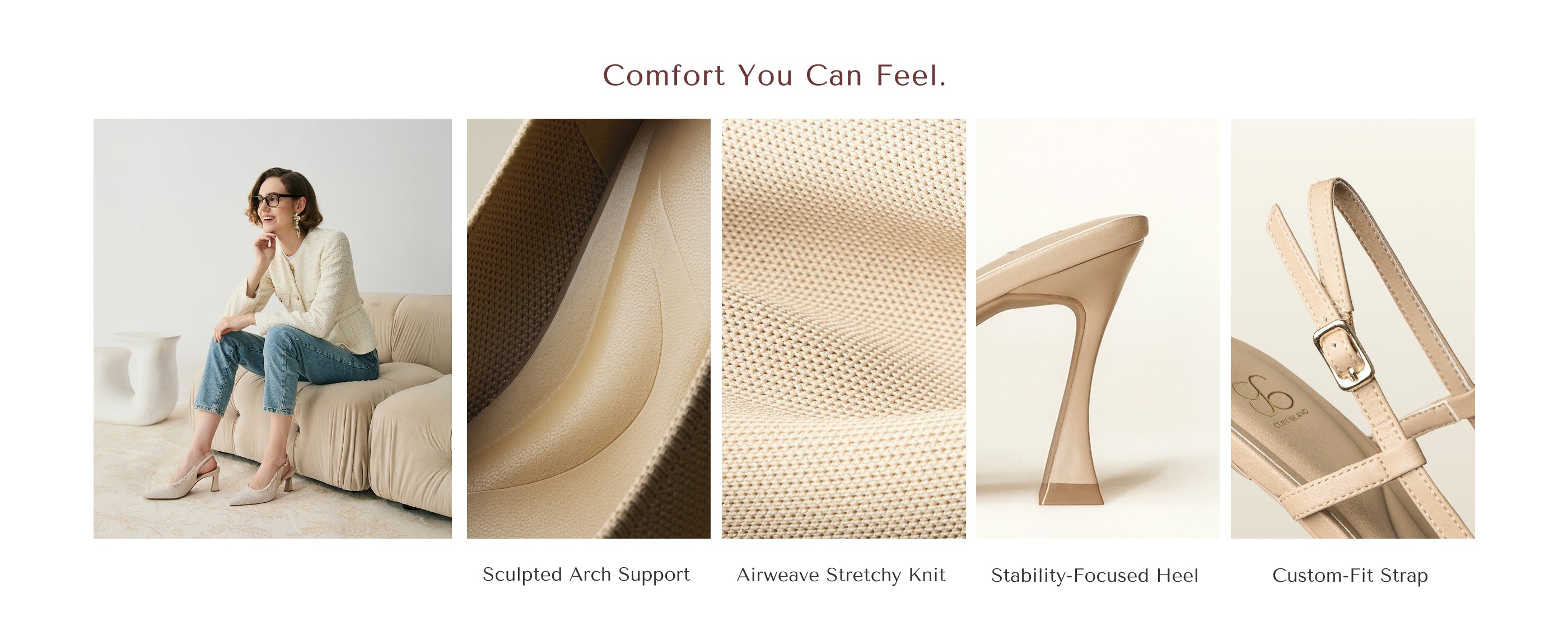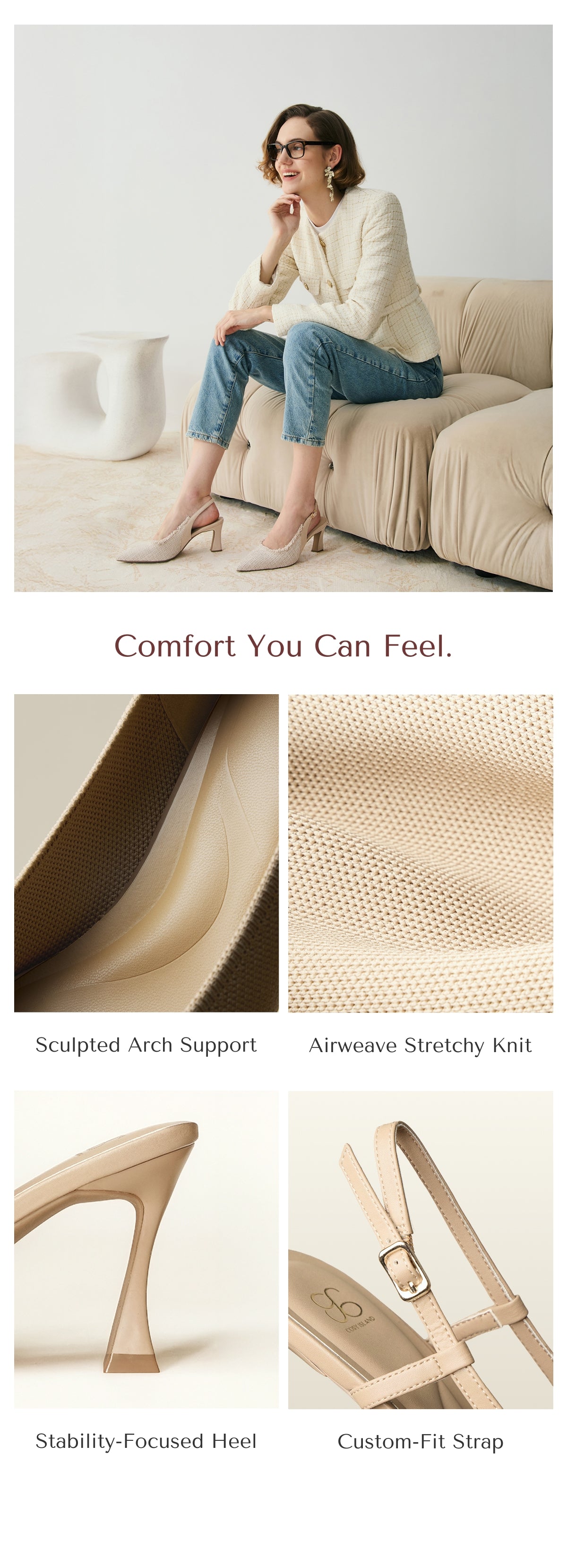 These textured block-heeled slingbacks bring a soft elegance to your everyday style. Crafted in a woven fabric blend with velvet lining, the pointed toe and 7cm (2.76 inches) stable block heel make them as flattering as they are walkable.