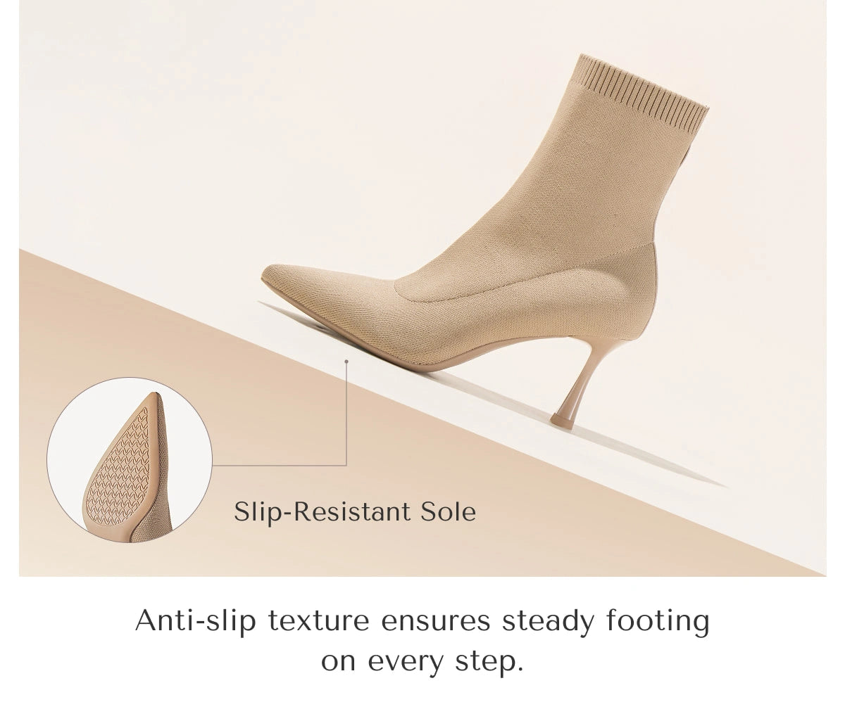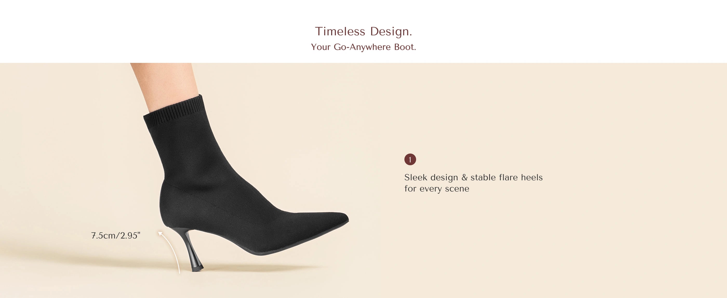 Elevate your style with our Minimalist Pointed Toe Sock Ankle Boots. Crafted with Fly Woven materials, these boots offer a sleek and modern look. Slip on these boots with ease and enjoy the added height and sophistication of the stiletto heels and pointed toe design, perfect for any occasion. Heel height measures at 7.5cm (2.95 inches).