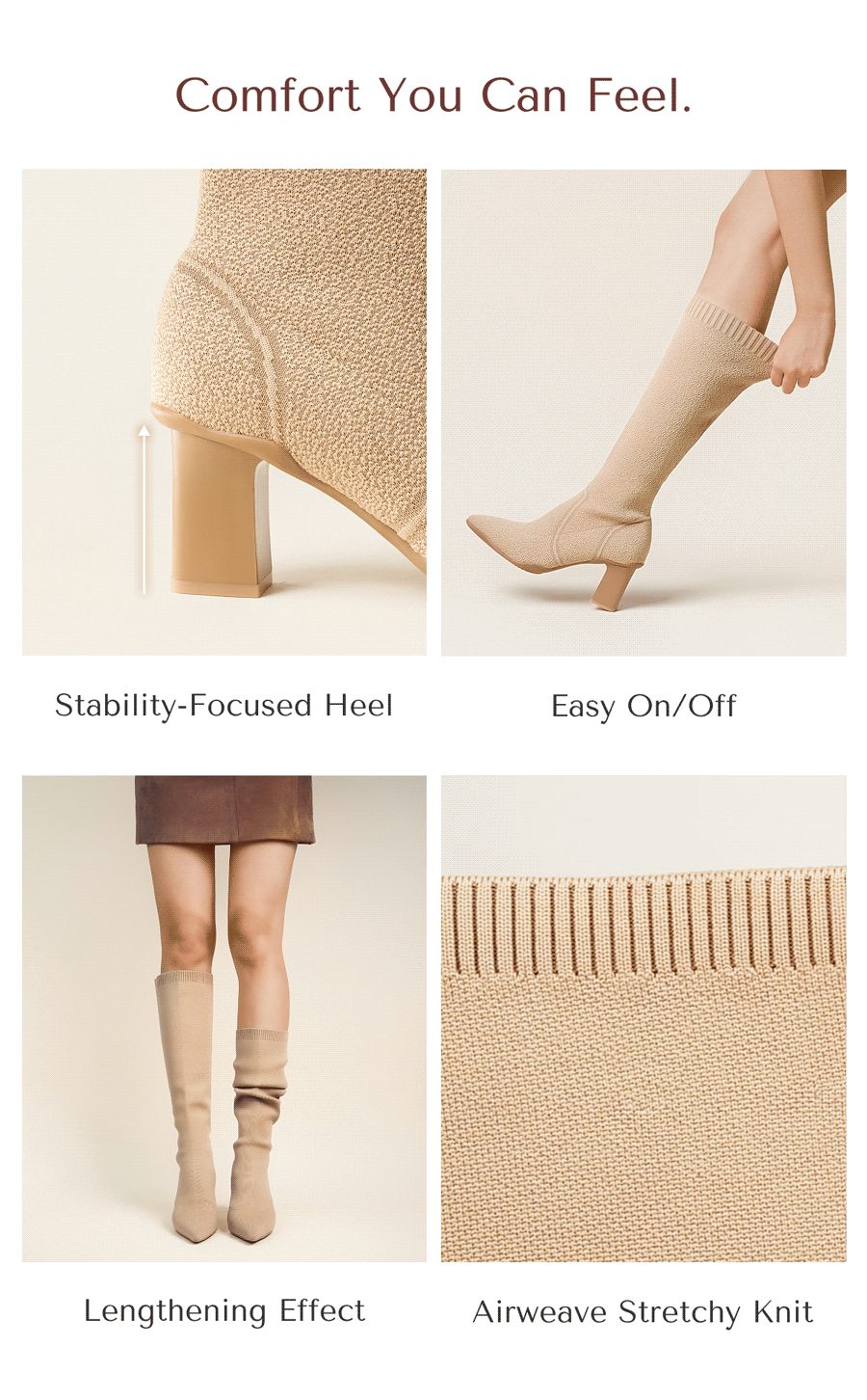 Step into timeless sophistication. These Square Toe Block Heel Knee-High Boots combine clean, minimalist design with all-day comfort. Crafted with a breathable fly-woven upper, sturdy block heel, and slip-on fit, they provide stability and effortless style. The non-slip sole ensures confidence in every step, making them perfect for workdays, weekends, or nights out.