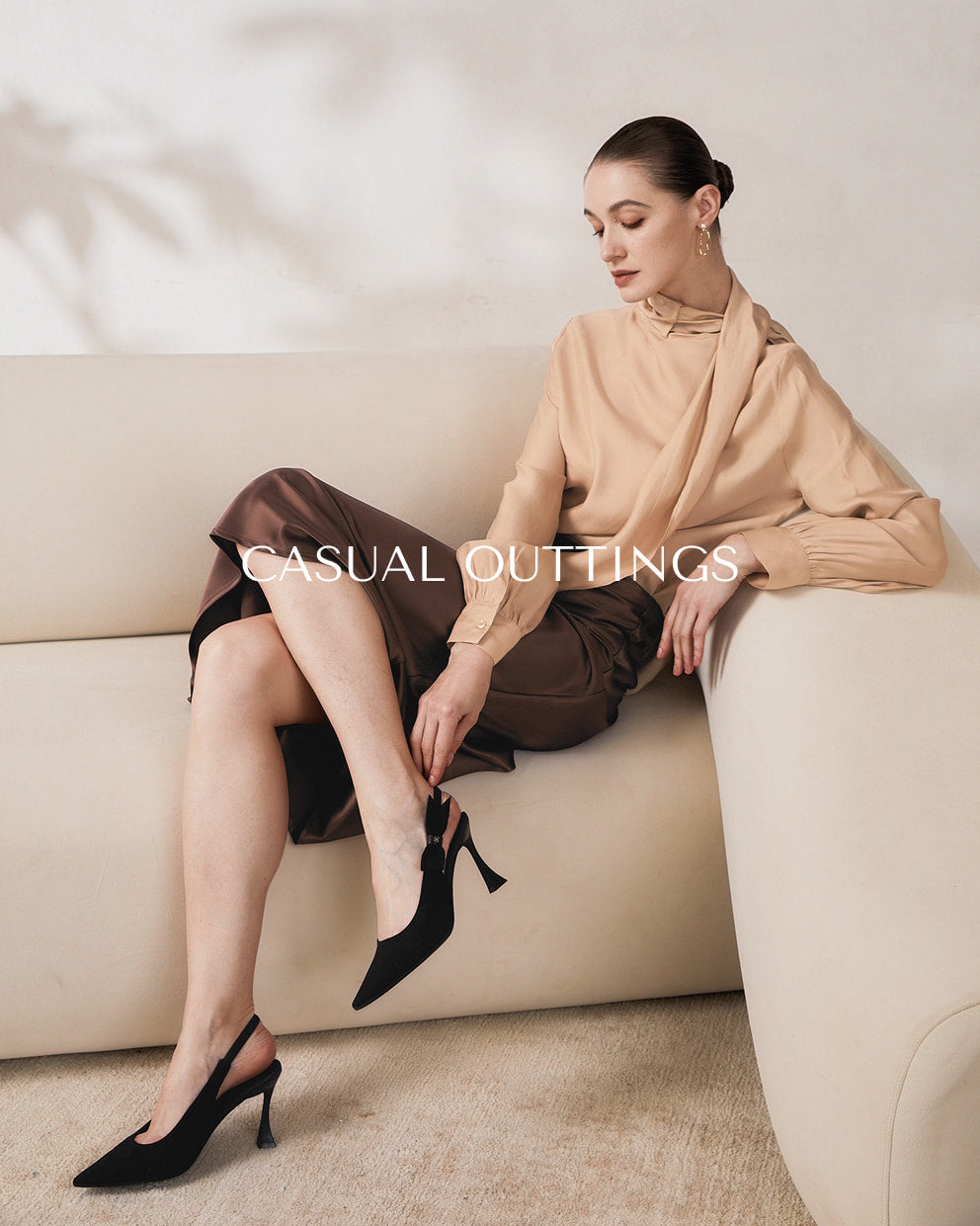 Step into elegance with the Everlush Velvet Slingbacks. Crafted from plush velvet and finished with a graceful bowknot detail, these heels embody timeless sophistication with a modern edge. The pointed toe elongates the silhouette, while the sleek slingback design and sculpted stiletto heel create a confident, feminine profile. Perfect for evenings out or elevating your everyday look.