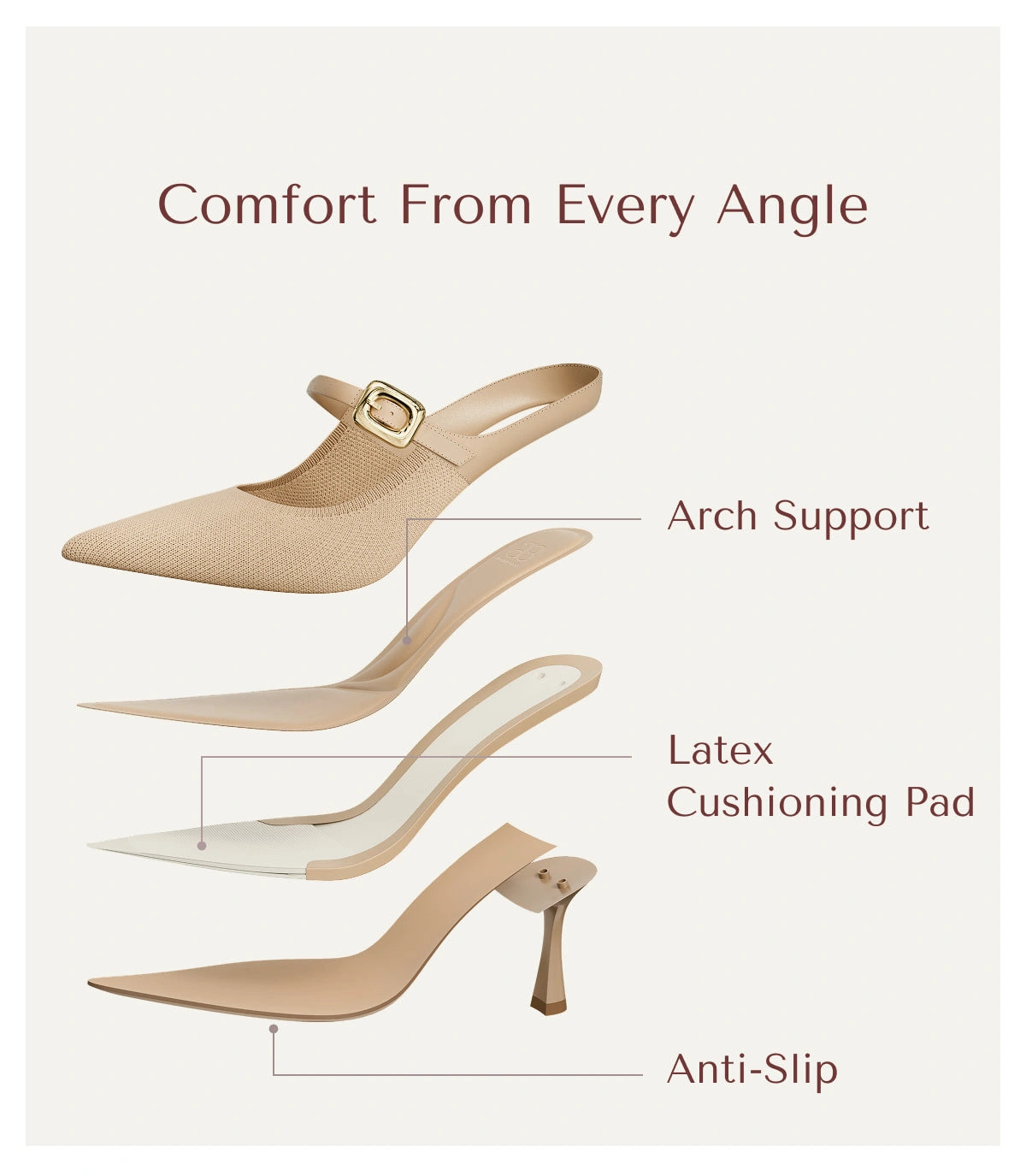 Elevate your style with our GraceLithe Pointed Toe Heeled Mules. These sleek pointed toe mules feature a stiletto heel for added sophistication. Perfect for any occasion, these shoes will accentuate your legs and add a touch of luxury to your wardrobe.