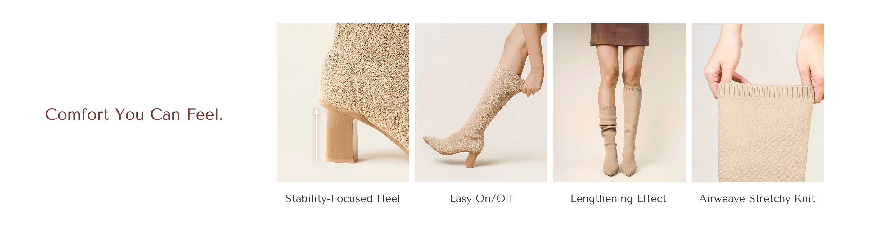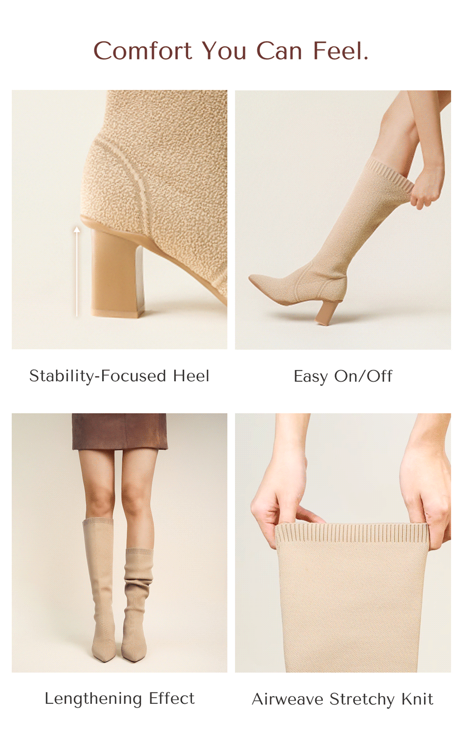 Elevate your style with the LuxeBit High Boots — a seamless blend of modern sophistication and everyday comfort. Designed with a sleek pointed toe, walkable block heel, and a subtle metallic bit detail at the vamp, these boots bring polish to any outfit. The fly-woven shaft hugs your legs for a flattering fit, while the slip-on design ensures effortless wear. From day to night, these boots are your go-to for timeless elegance with a contemporary twist.
