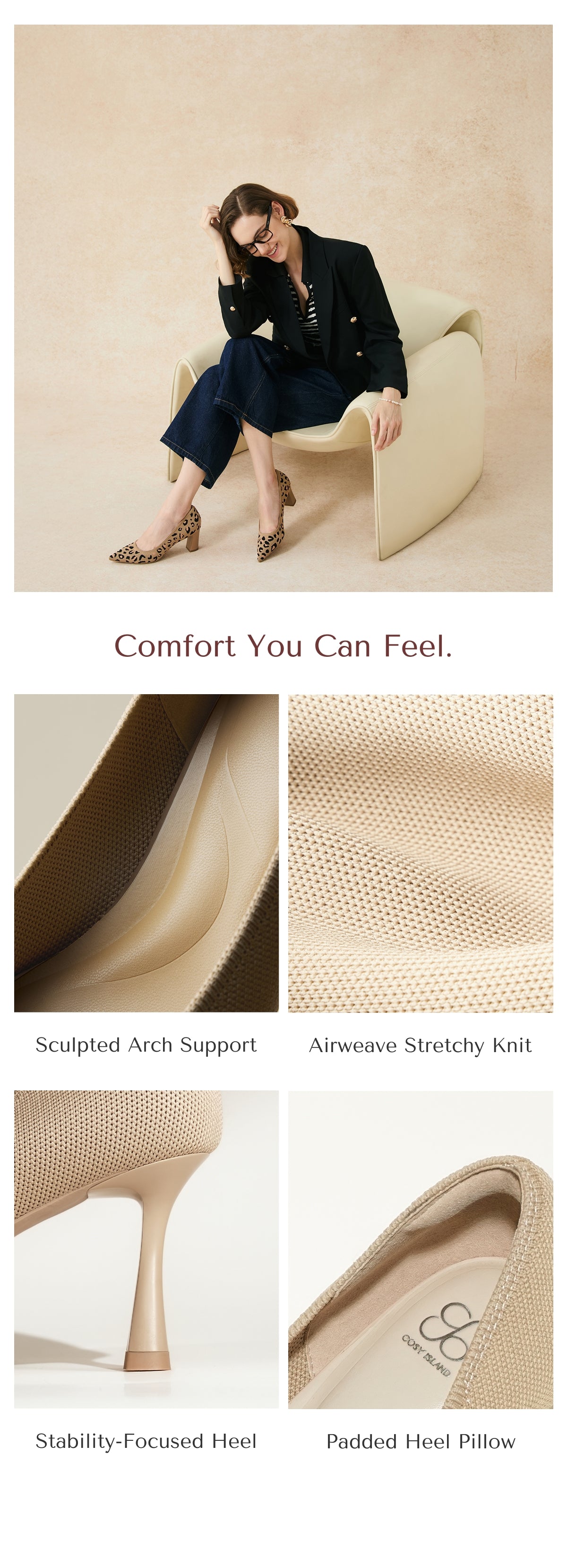 Effortlessly chic and comfortable, these pumps are designed for all-day wear. Featuring a sleek pointed toe, a 7cm/2.76 inches block heel, and a convenient slip-on design, they’re perfect for work or casual outings. Crafted with durable fly-woven materials and a sturdy rubber sole, they combine style with practicality. The heel is adorned with a subtle, embossed brand logo, adding a touch of understated luxury and showcasing the craftsmanship in every detail.