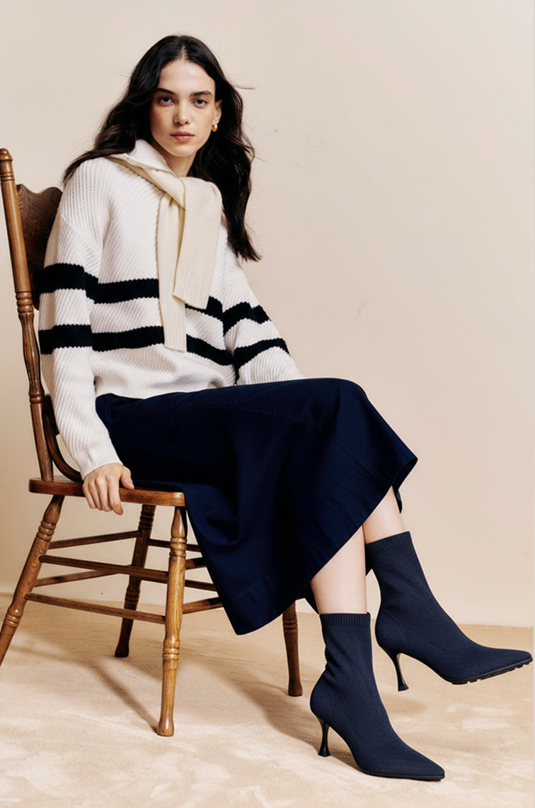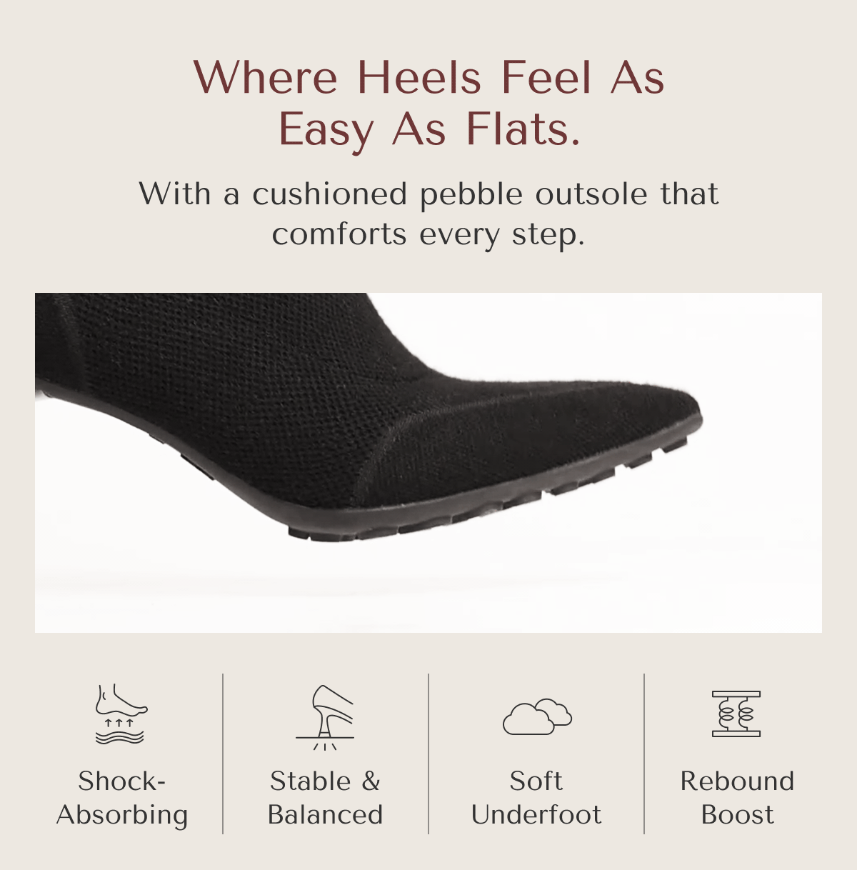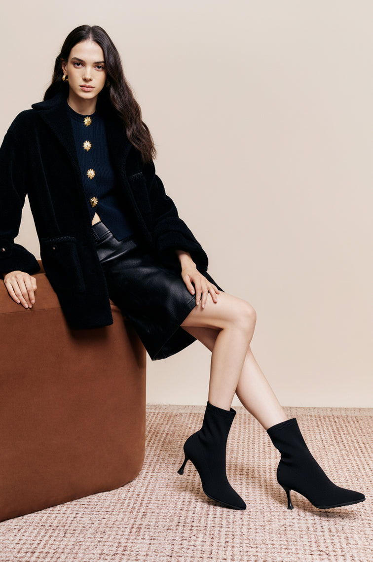 All grip, all grace. The SoftBounce Boots combine sleek design with a functional pebble-pattern outsole for superior traction. Crafted from breathable fly-woven fabric with 6% wool blend, they keep you cozy yet lightweight. A pointed toe and sculpted stiletto heel bring effortless sophistication, while the anti-slip sole ensures confident steps from day to night.
