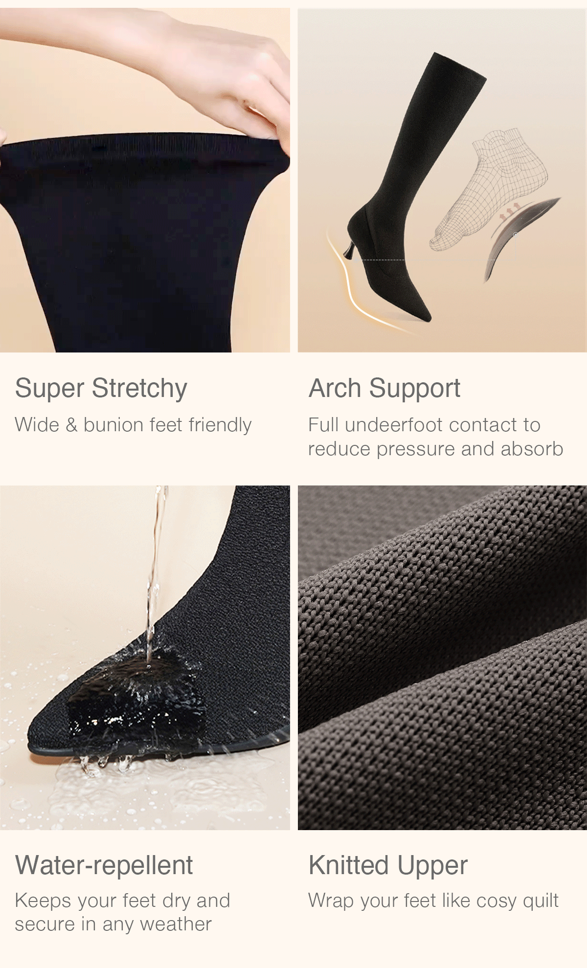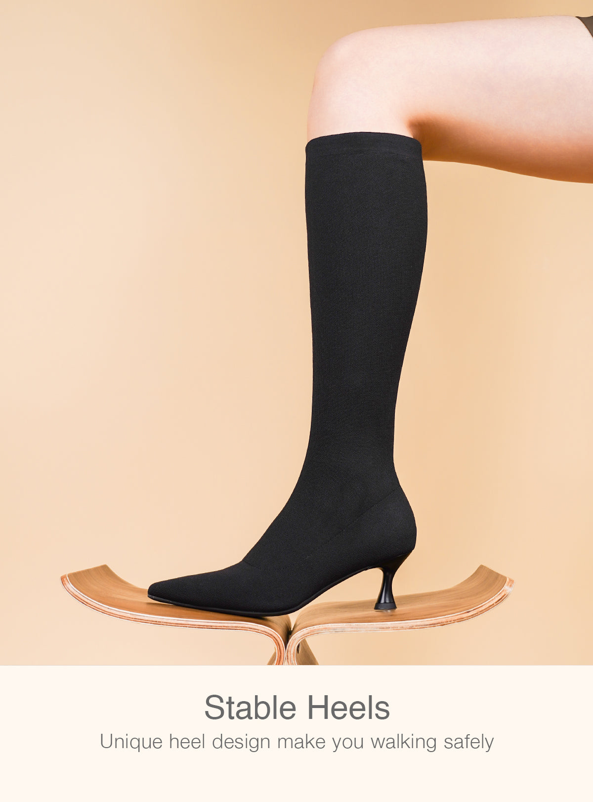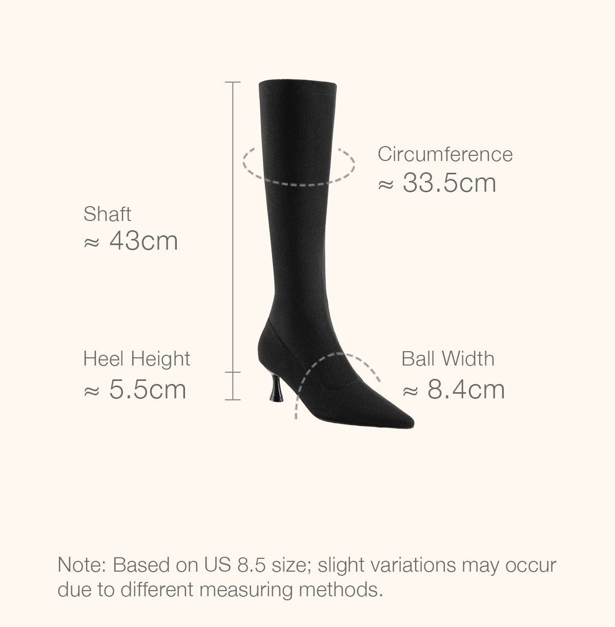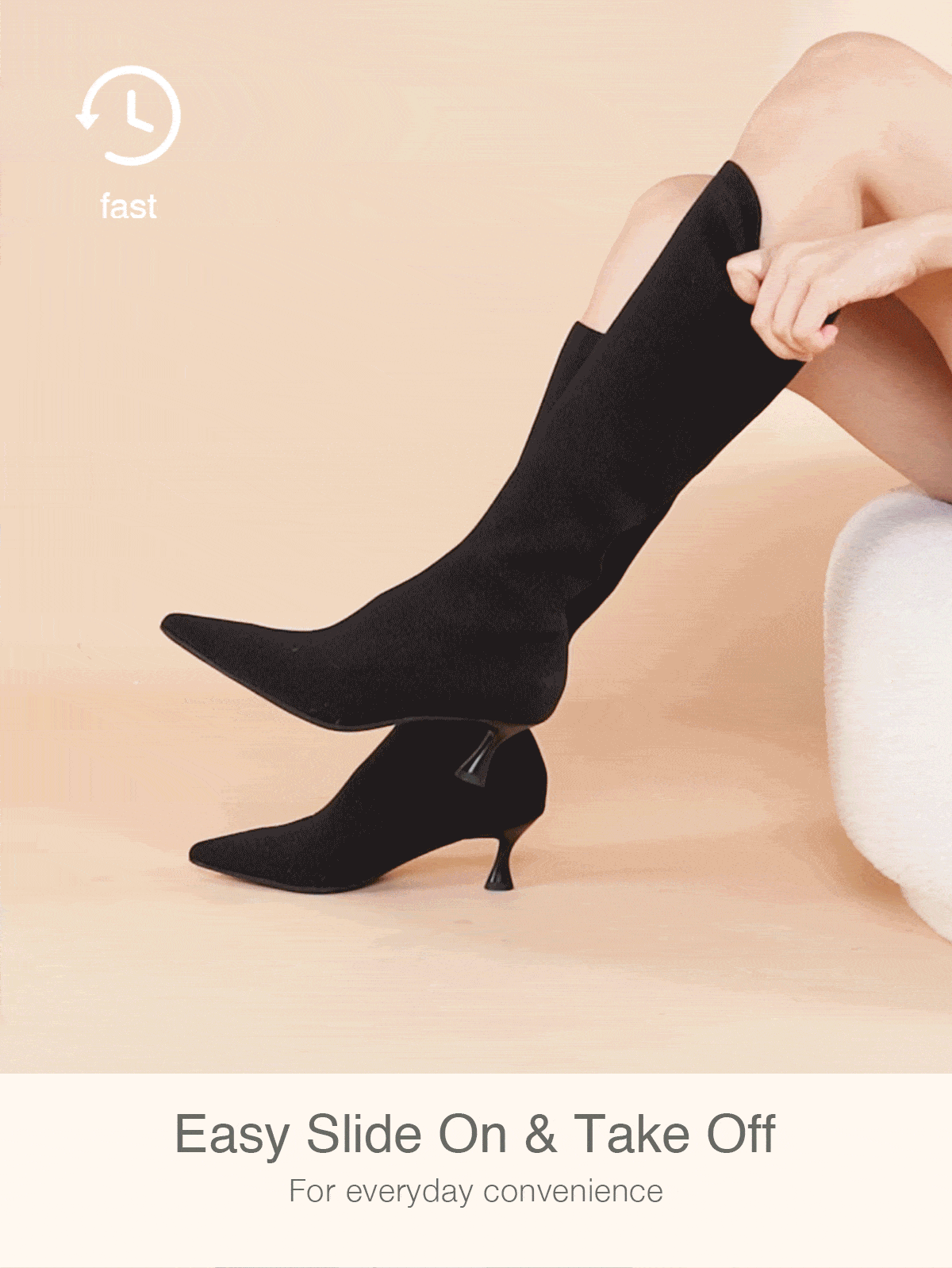 Elevate your style with our Spectrum Chic Pointed Toe Sock High Boots. Crafted with luxury Fly Woven materials, these boots feature stiletto heels and a slip-on design for effortless sophistication. The pointed toe adds a touch of refined elegance. With a comfortable 5.5cm (2.17 inches) heel height, these boots are both stylish and practical.