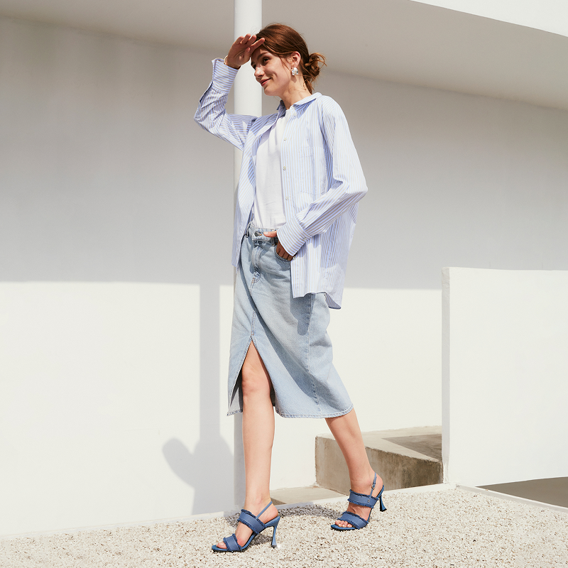 DenimTrim Square Toe Stiletto Sandals