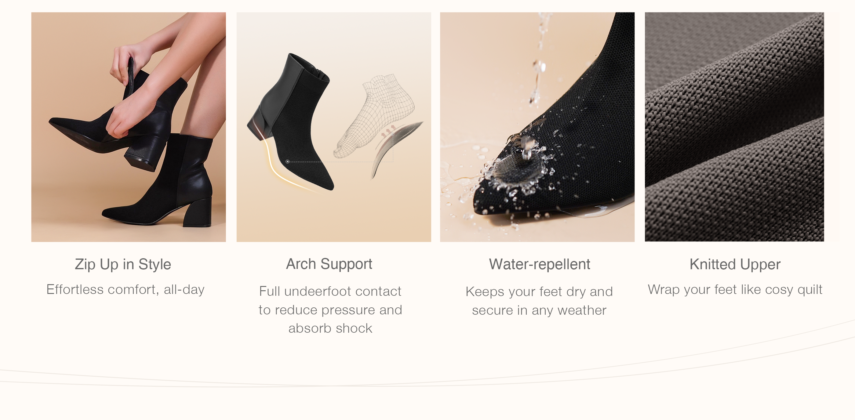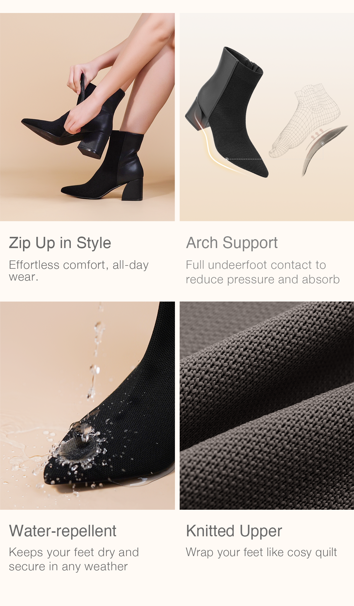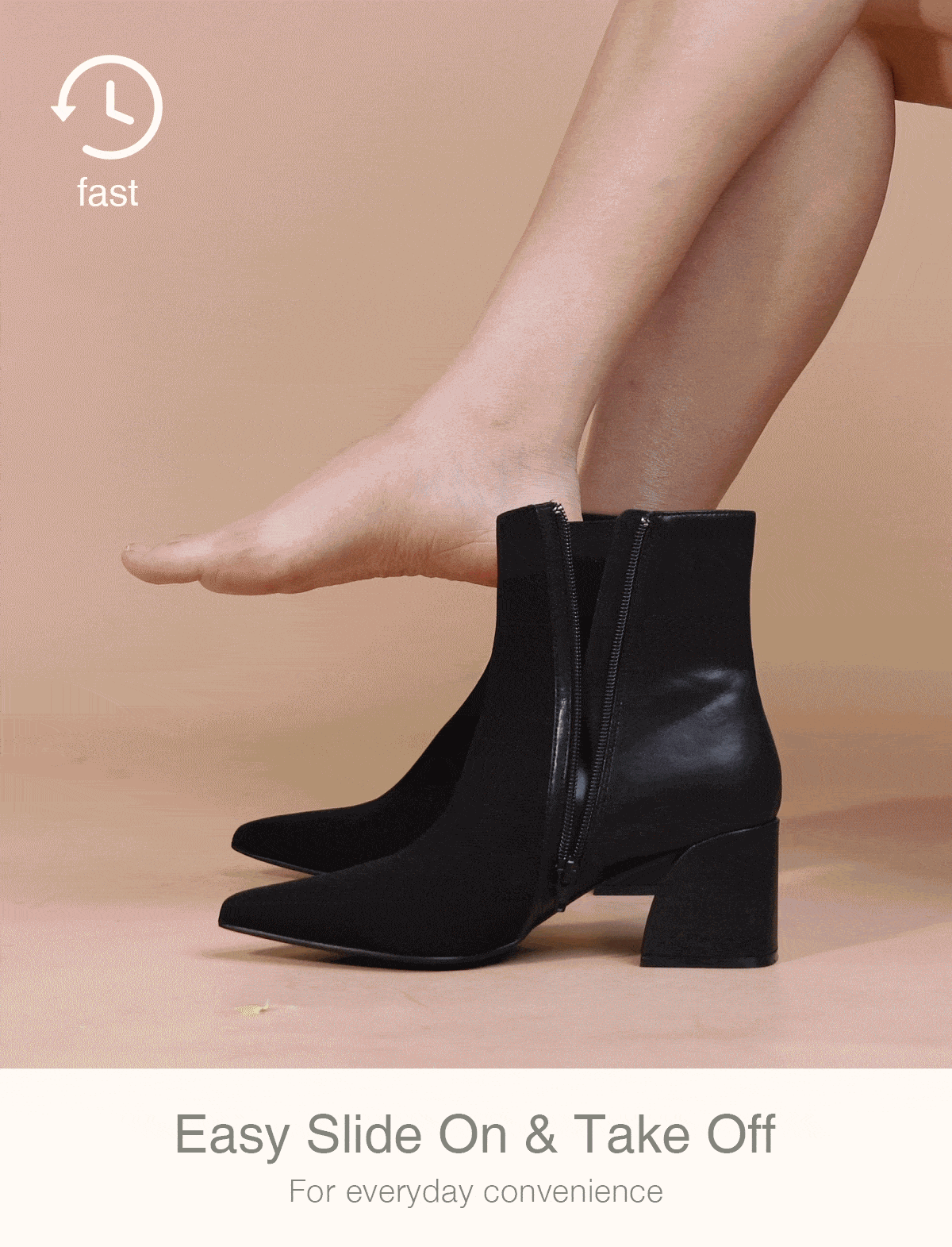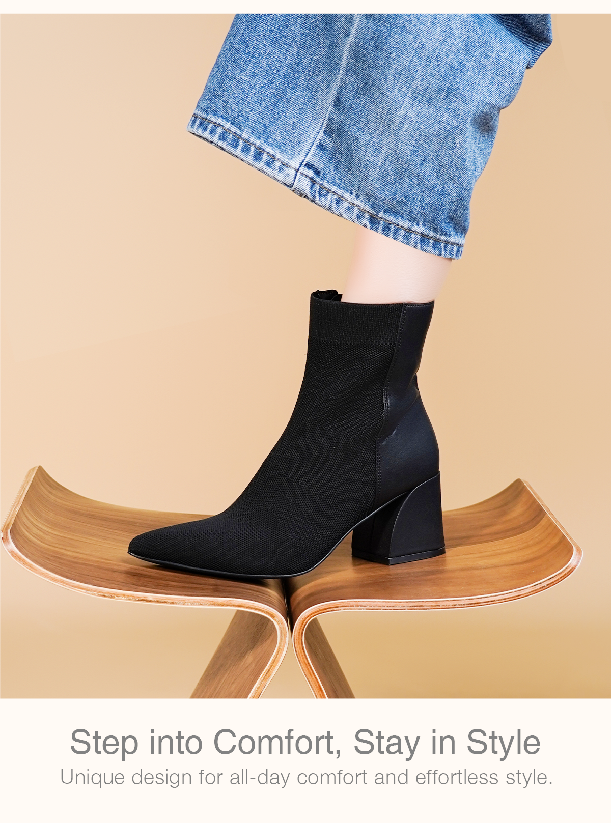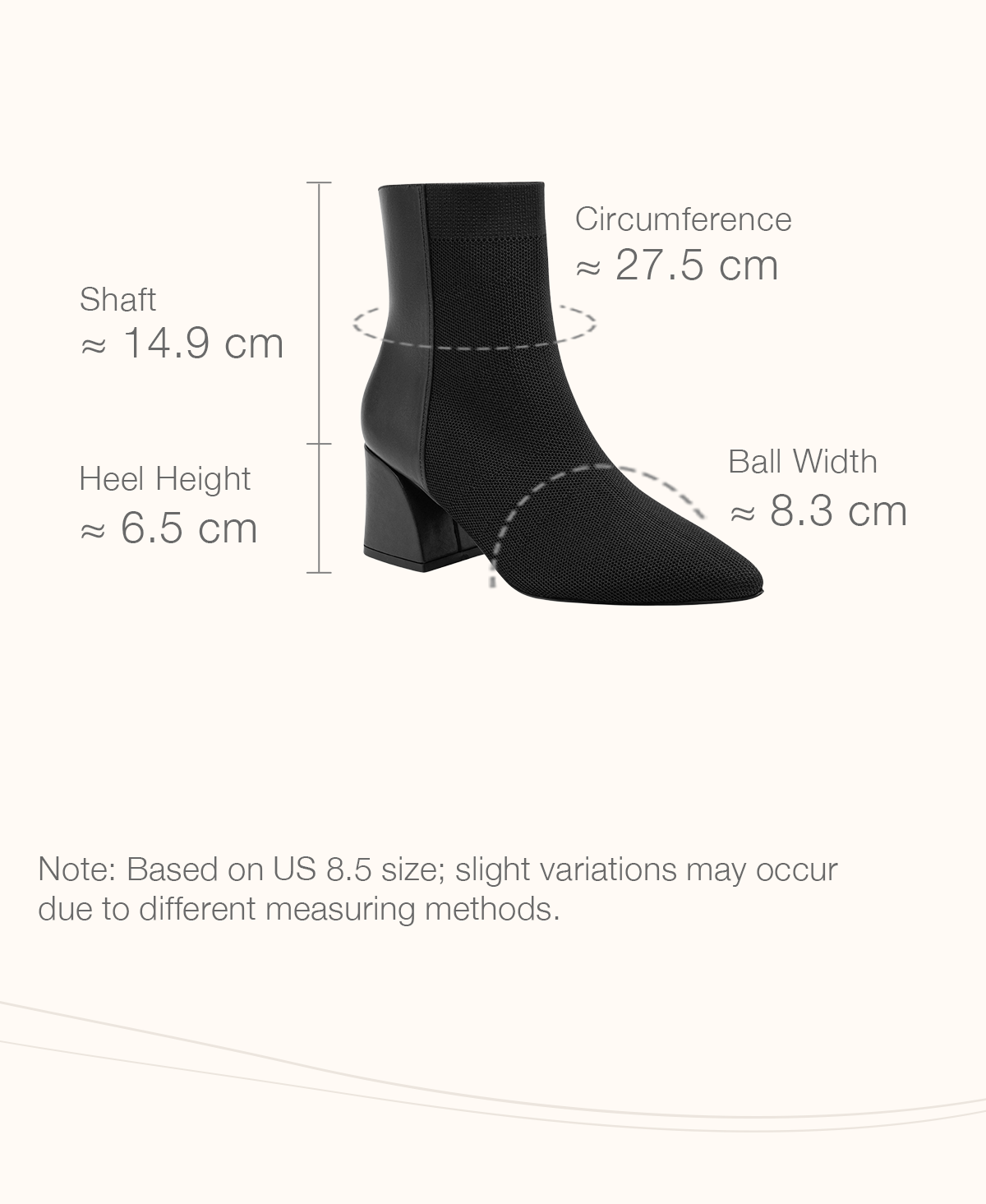 Elevate your style with our Commute Zipper Pointed Toe Chelsea Boots. Crafted from luxurious Fly Woven and PU materials, these boots feature a pointed toe and block heels for a sleek and sophisticated look. The convenient zipper closure adds a touch of elegance while the 6.5cm (2.56 inches) heel height provides comfort and style.