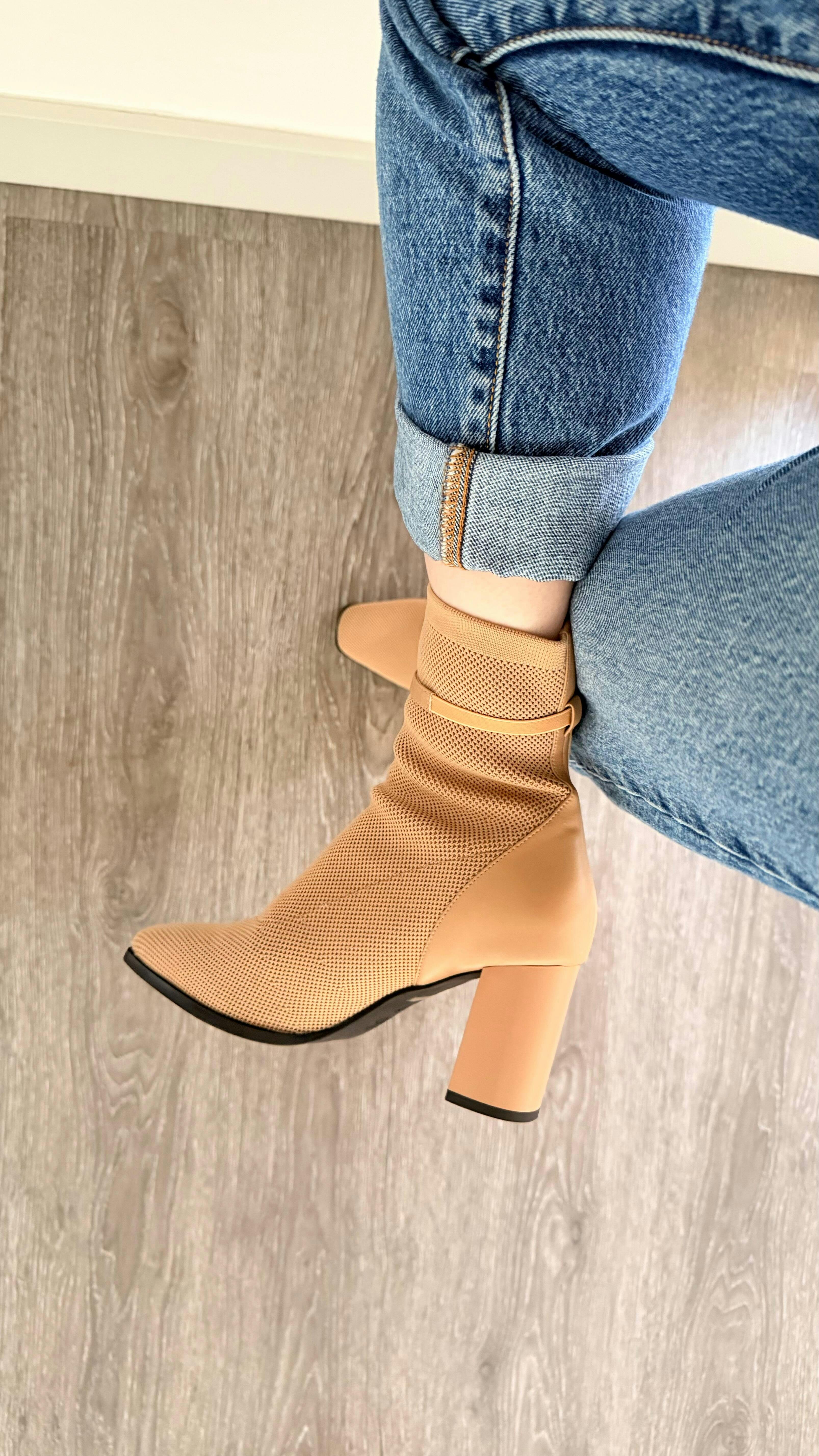 AmberGlow Square Toe Heeled Ankle Boot