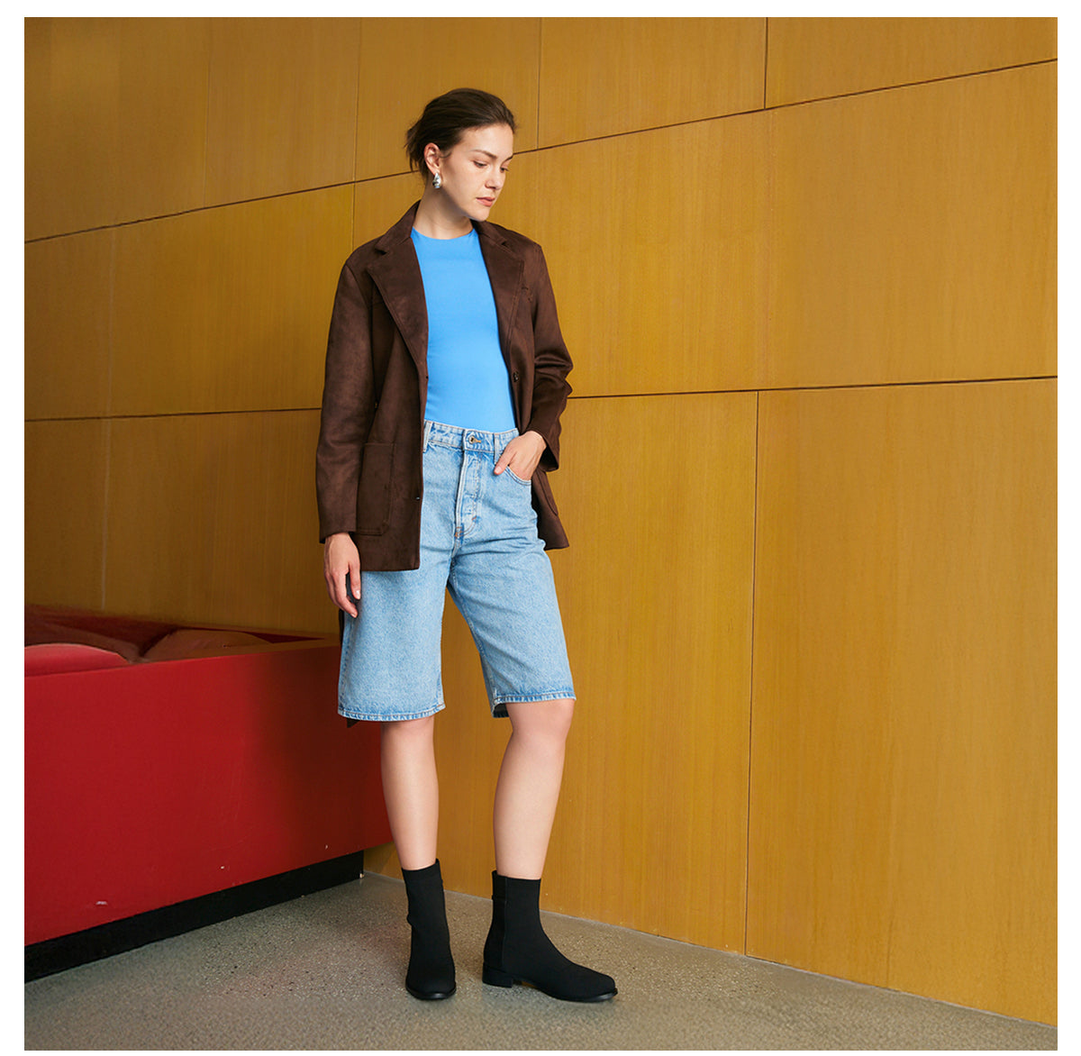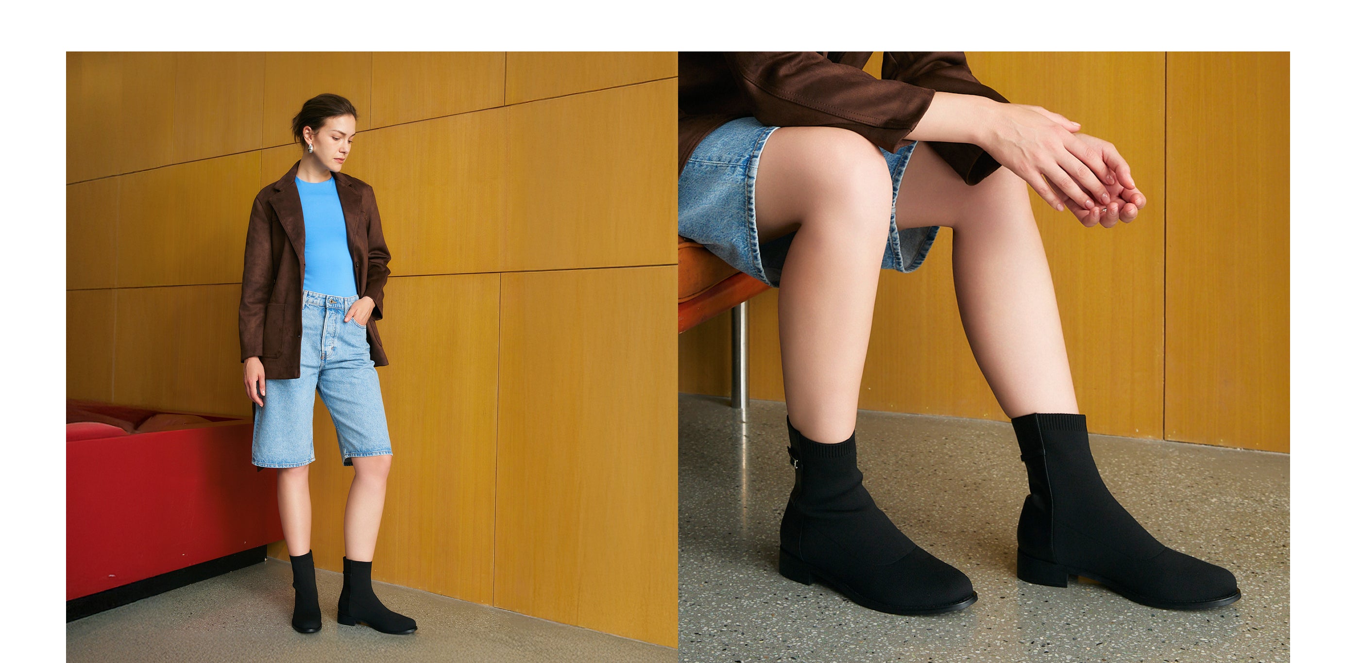 A modern essential for all-day comfort. These round-toe sock boots feature a Fly Woven upper with PU heel detail, a golden buckle accent, and a stable 3cm (1.18 inches) block heel. Effortlessly versatile, perfect for polished everyday wear.