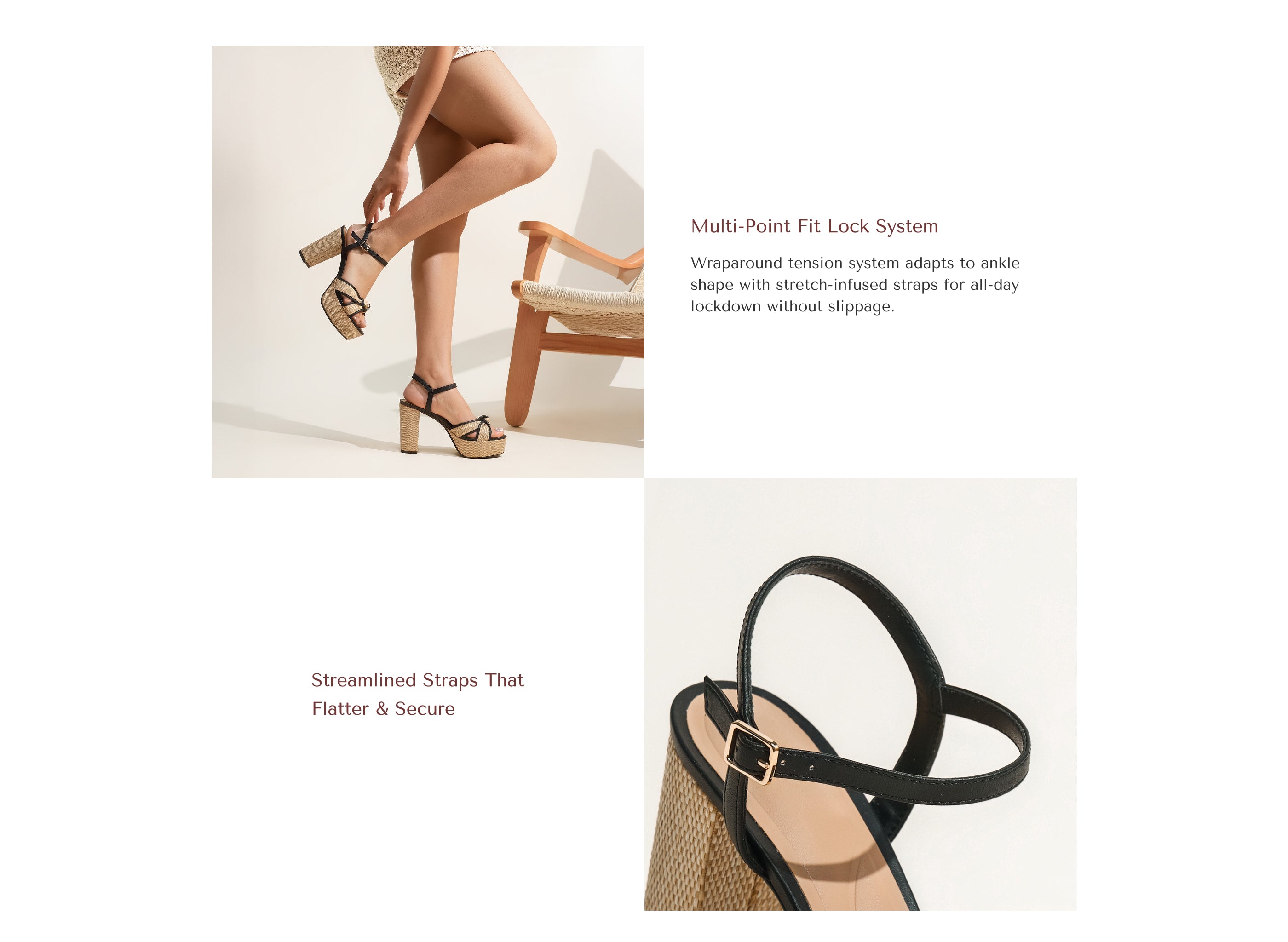 Embrace effortless elegance with these elegance raffia platform sandals. Designed with a textured raffia upper and lining, they exude a natural, bohemian charm. The round toe and 9.5cm (3.74-inch) heel offer a sleek, elongated look, while the 3cm (1.18-inch) platform provides added comfort and balance. Finished with a pin buckle ankle strap for a secure fit, these sandals are perfect for warm-weather outings, beach parties, or casual-chic ensembles.