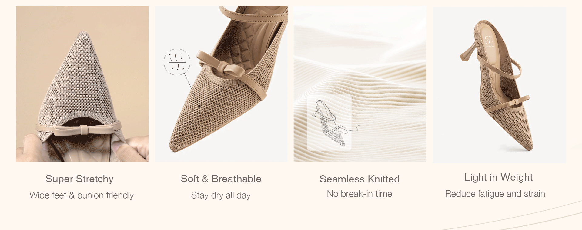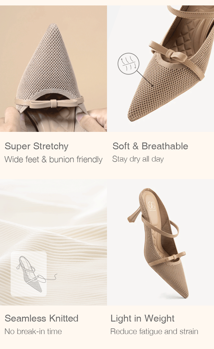 Designed with a fly woven upper and lining, and a durable rubber sole, these stiletto heels feature a delicate butterfly detail, pointed toe, and easy slip-on style. With a 7cm heel height, they provide a perfect balance of sophistication and comfort.