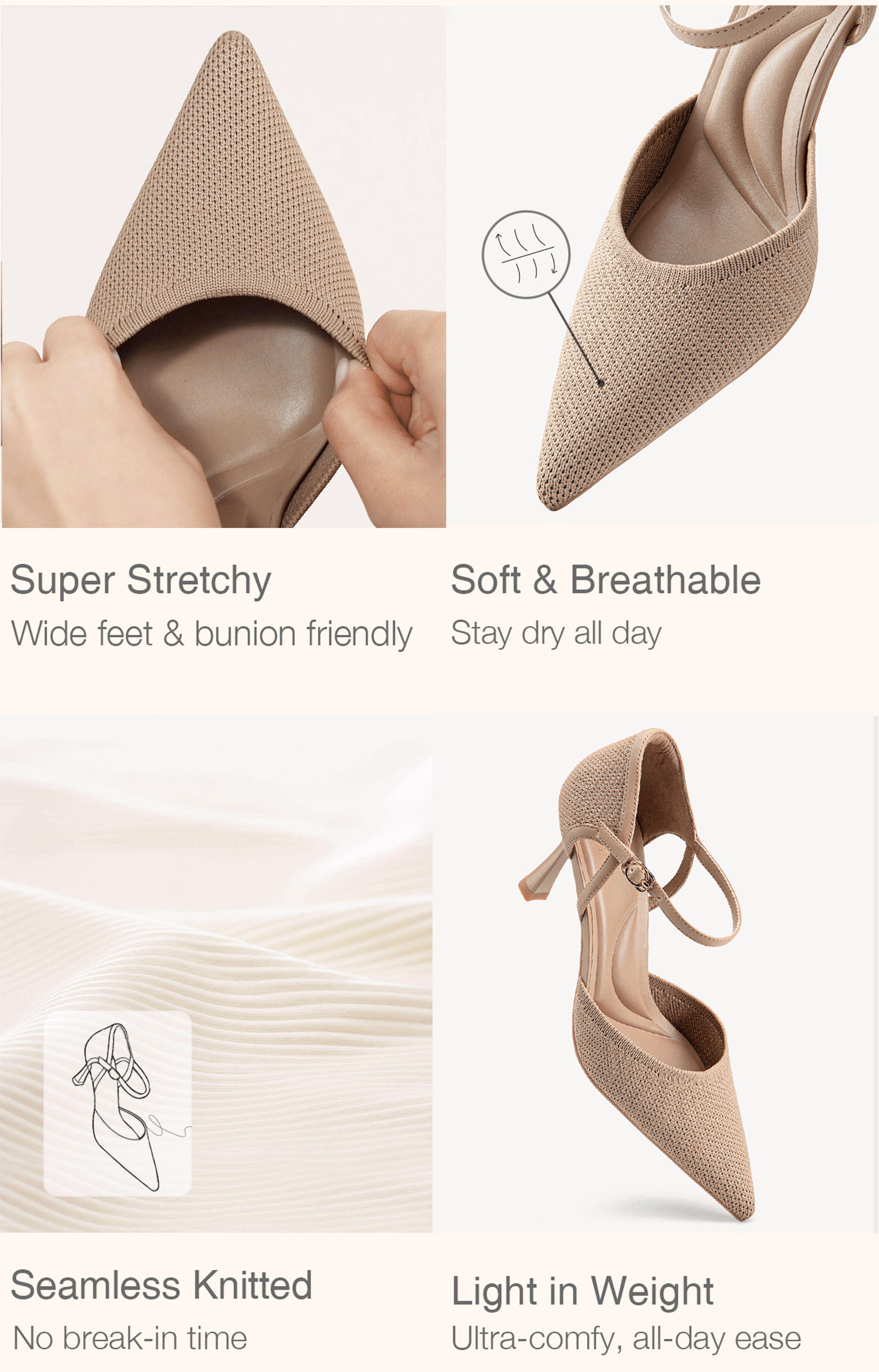 Designed for sophistication and comfort, these pointed-toe stiletto pumps feature breathable Fly Woven uppers and a 7.5cm (2.95 inches) sleek heel. The cushioned insole with arch support ensures long-lasting comfort, while the rubber sole provides excellent grip. The pin-buckle strap adds security and a touch of elegance, making them ideal for formal occasions, office wear, or an evening out.