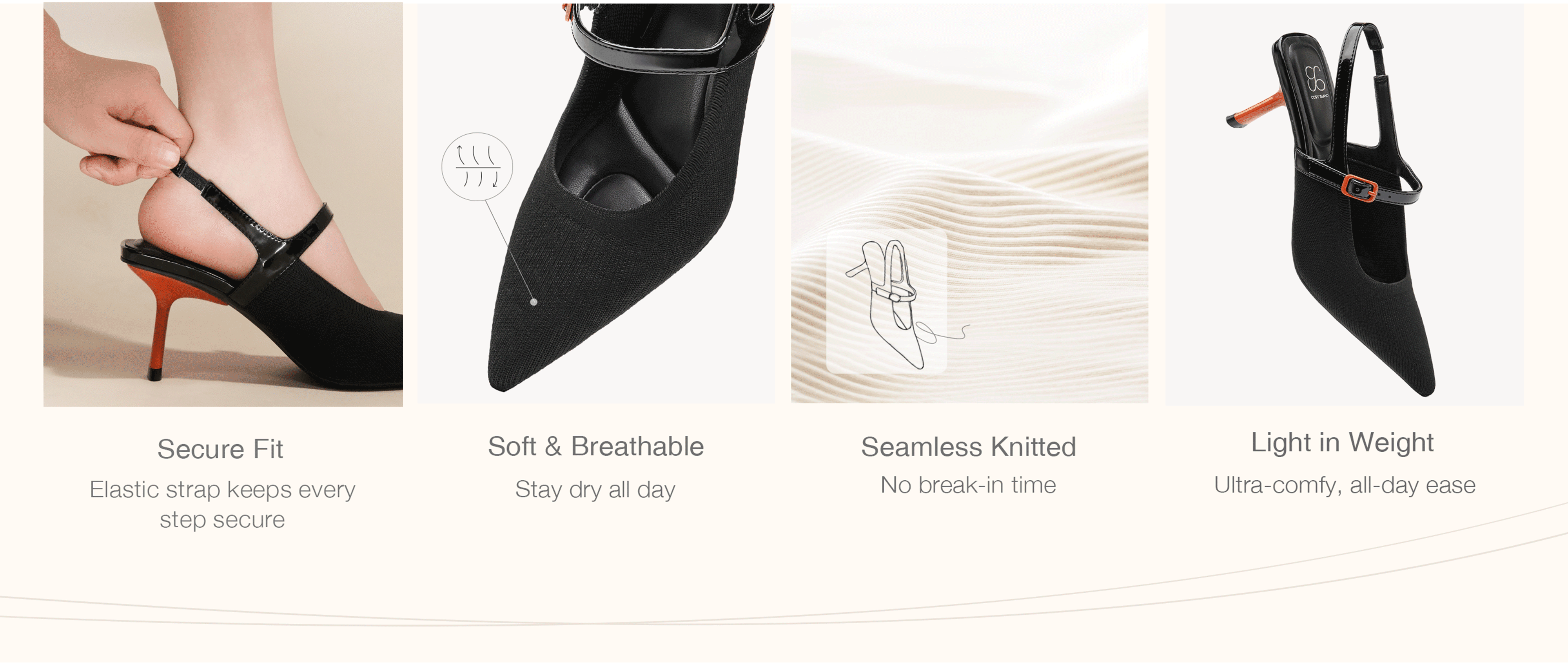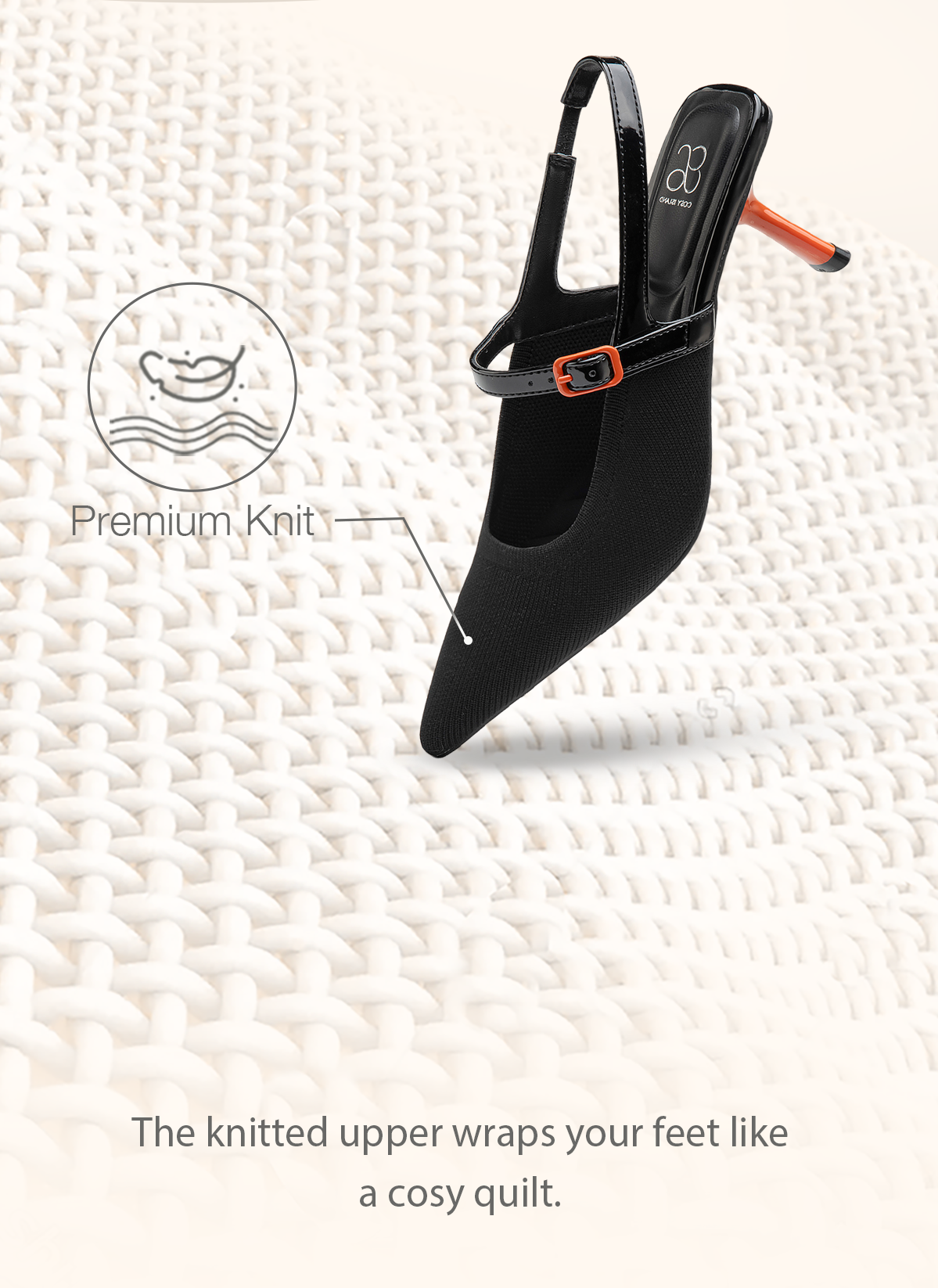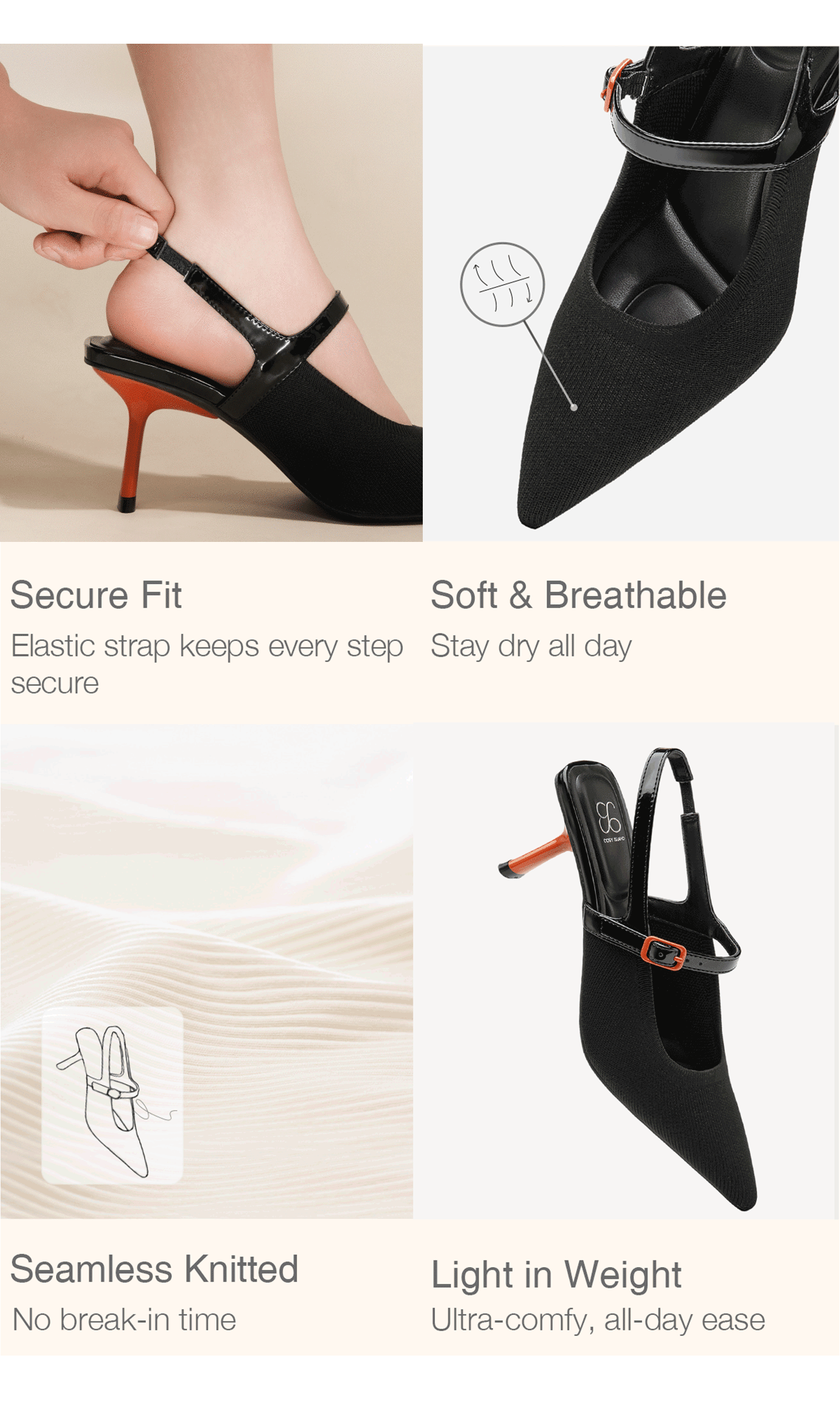 Elevate your look with these two-tone slingback pumps, featuring a bold colored stiletto heel and a sleek pointed toe. Crafted from breathable Fly Woven material with cushioned arch support and a non-slip rubber sole, they offer style and comfort for any occasion. Perfect for office wear or evening events.