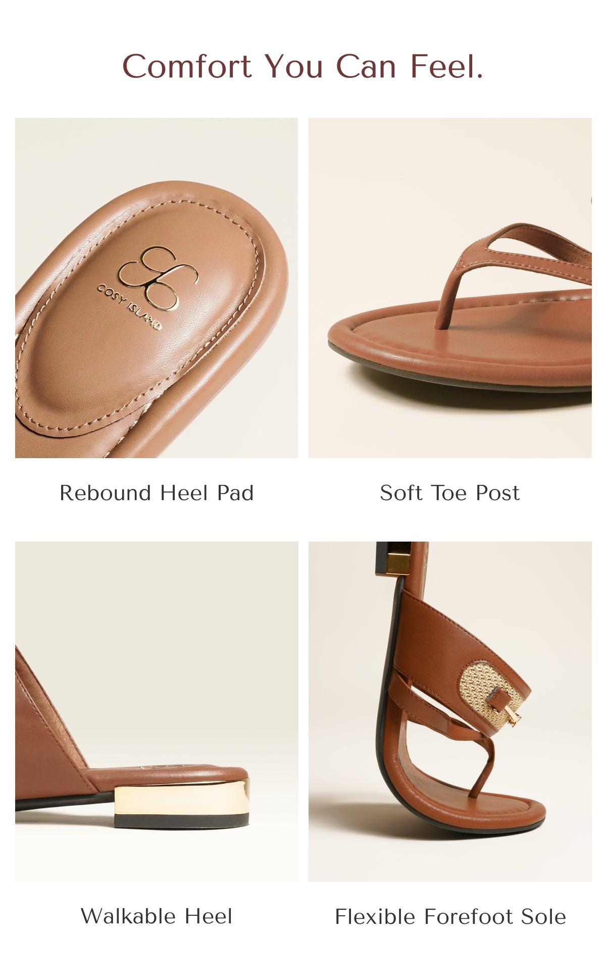 Step into effortless elegance with the VillaStroll Thong Sandal. Upgrading the casual flip-flop, this flat features luxury metallic hardware and a woven instep strap for an instant resort-chic look. To solve the rubbing and slipping of traditional toe-post shoes, the wide asymmetrical strap is lined with soft, stretchy Lycra that hugs your foot securely without causing blisters. Finished with a supportive 2cm(0.79'') heel to ease arch strain, it’s the ultimate slip-on for a seaside stroll or a casual patio lunch. Pair them beautifully with your favorite crisp linen trousers or a breezy summer maxi dress.