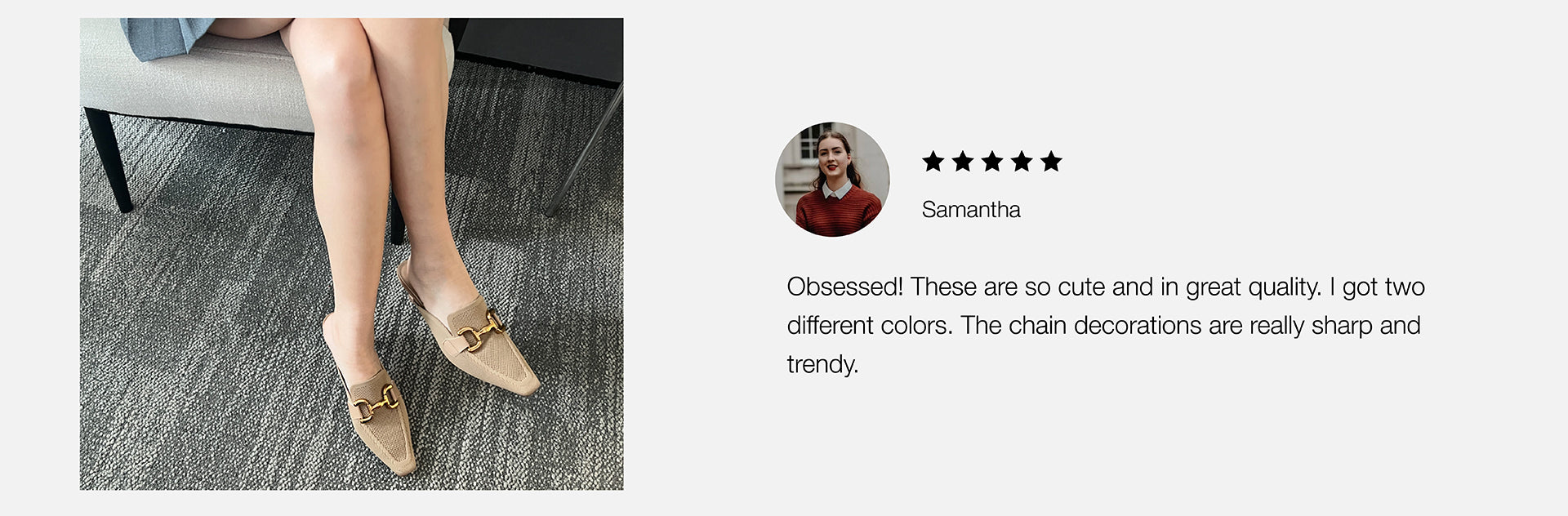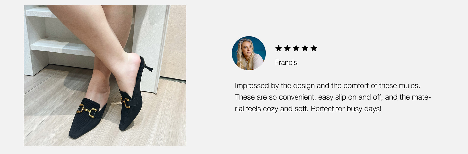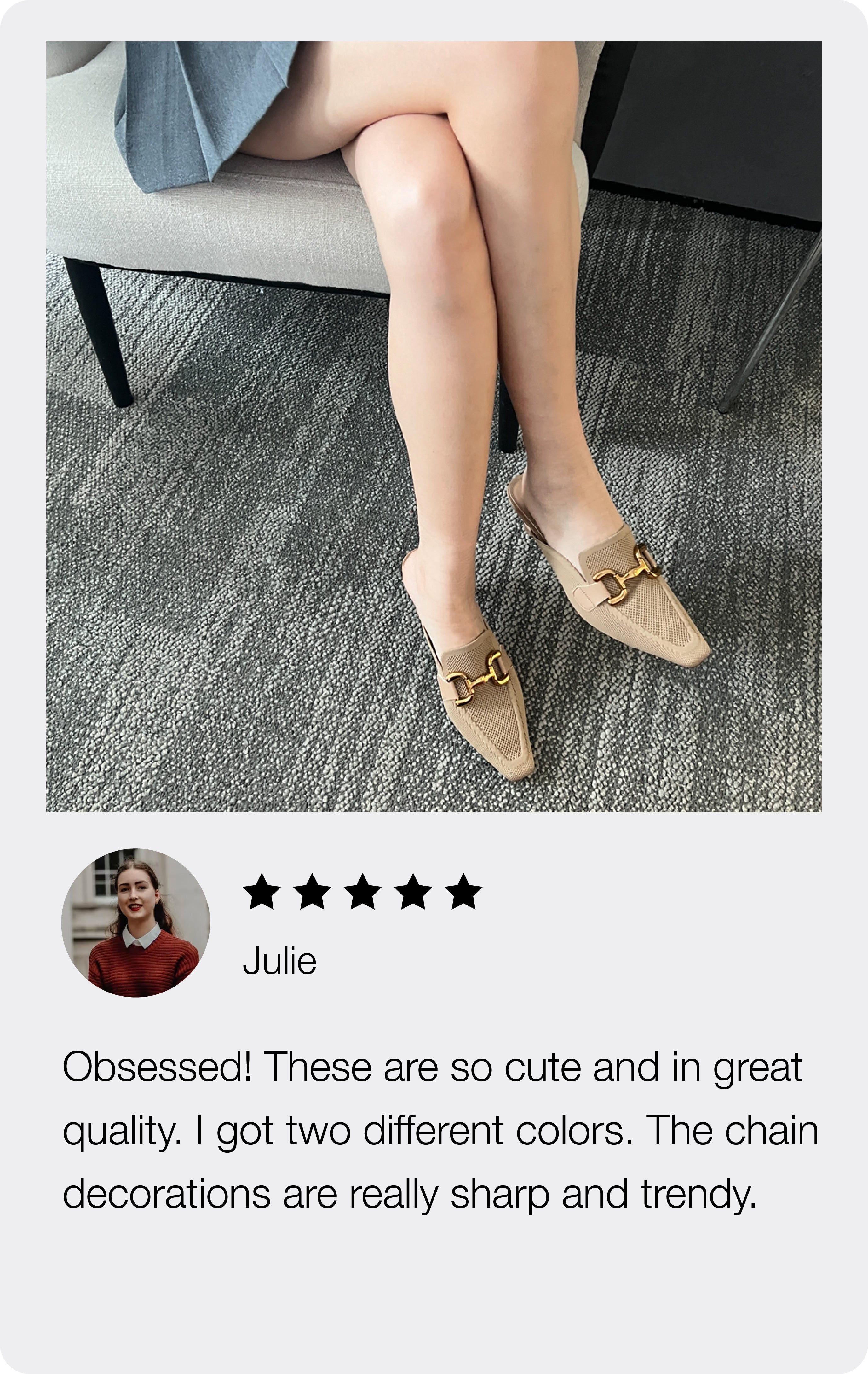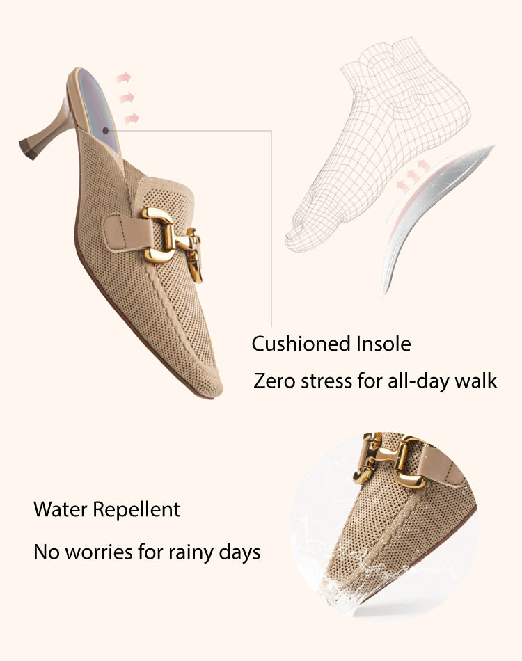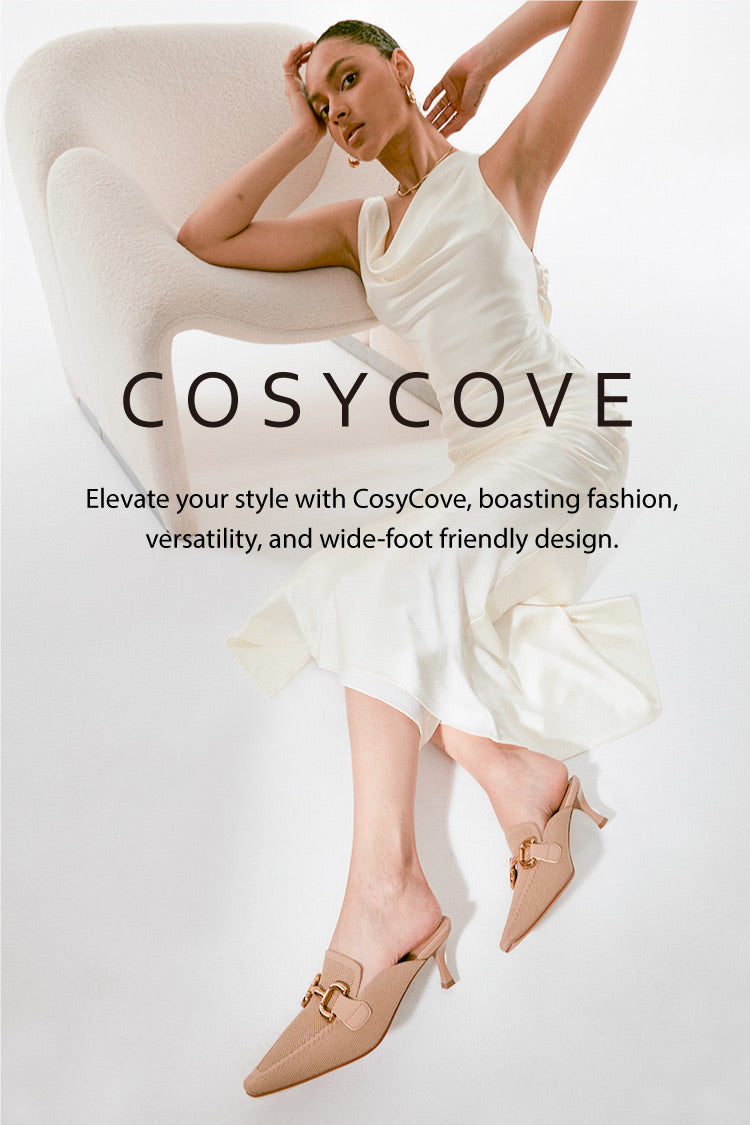 CosyCove boast a sleek design with a sophisticated pointed toe and eye-catching chain decorations, adding a touch of glamour to your every step.